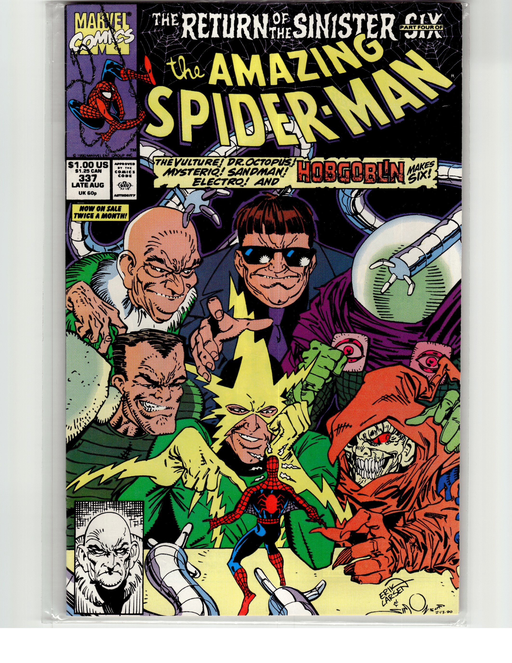 The Amazing Spider-Man #337 (1990) First Appearance: Sinister Six (Doctor Octopus, Electro, Mysterio, Sandman, Hobgoblin, Vulture) (team) (full)