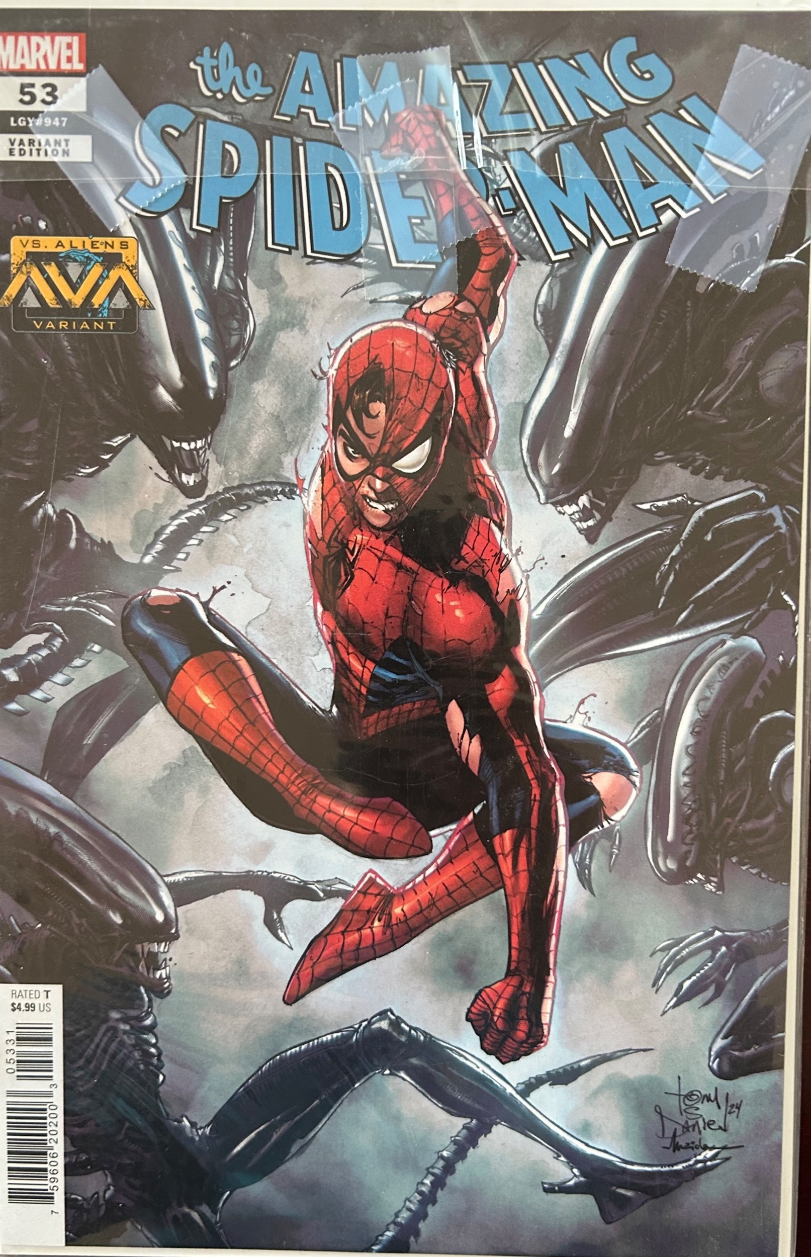 The Amazing Spider-Man #53 Daniel Cover (2024) ALIENS vs AVENGERS variant