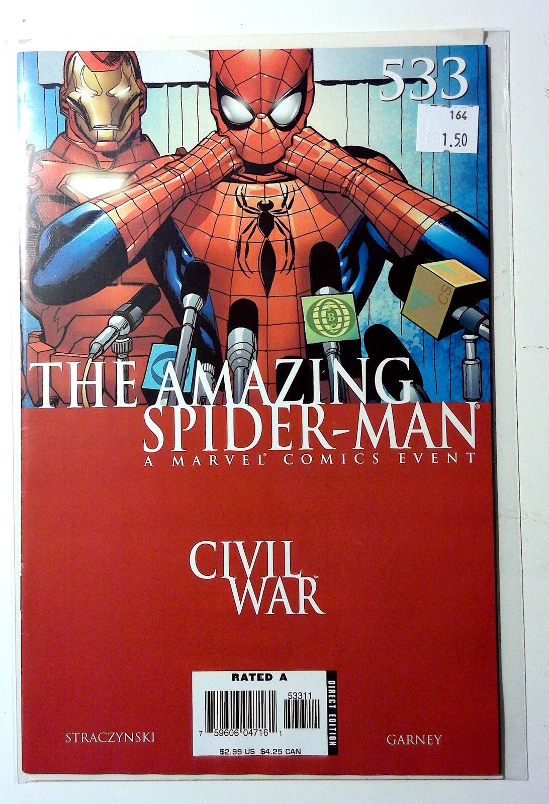 View All ListingsSee FeedbackAdd to Favorite SellersDESCRIPTIONThe Amazing Spider-Man #533 Marvel Comics 2006 Ungraded Condition Modern Age Comic Book 1st PrintingThe Amazing Spider-Man #533 (2006) Written by J. MICHAEL STRACZYNSKI. Pencils & Cover by RON GARNEY. CIVIL WAR TIE-IN! "THE WAR AT HOME" There's no turning back now. Peter has made the most important decision of his life. As the sides square off for the looming Civil War, he'll have to live with it. Now the big question is, what will this decision cost him? Part 2 (of 7). 36 PGS./Rated AIncrease your comic book collection and enjoy this comic book featuring stories from Marvel Comics.Our newer comic books for sale are usually* high grade, unread, mostly flat, and glossy back stock. Our comics are usually unread back-issues in excellent condition. See the listing image(s) to get a better evaluation of the condition. Grading, if provided, is of our personal opinion.COMBINED SHIPPING PROMOTIONAnd to Cart and Pay shipping only once*. Flat rate shipping cost for multiple item orders.*Highest shipping rate is applied to the order. *Exclusions apply - CGC/Slabbed books ship at a higher tier so the cost is only reduced.BEST OFFER ACCEPTEDOffers are excluded from promotional discounts since they represent your requested cost for purchase. Combined shipping can be expected but may not be applied automatically if you checkout offers/items separately.SHIPPING DETAILSOrders ships out the same or next business day. The average shipping delivery time range from 2 to 7 days. Shipped using economy options which is usually USPS Ground Advantage.PAYMENT DETAILSPay with Google Pay, PayPal, PayPal Credit, debit card, or most credit cards.FREE RETURNS30 days money back guaranteed. Returns accepted and shipping will be paid by the seller.Check Out Our Other ListingsHip Store:Cosmic-King©2025 cosmic-king. All Rights Reserved.