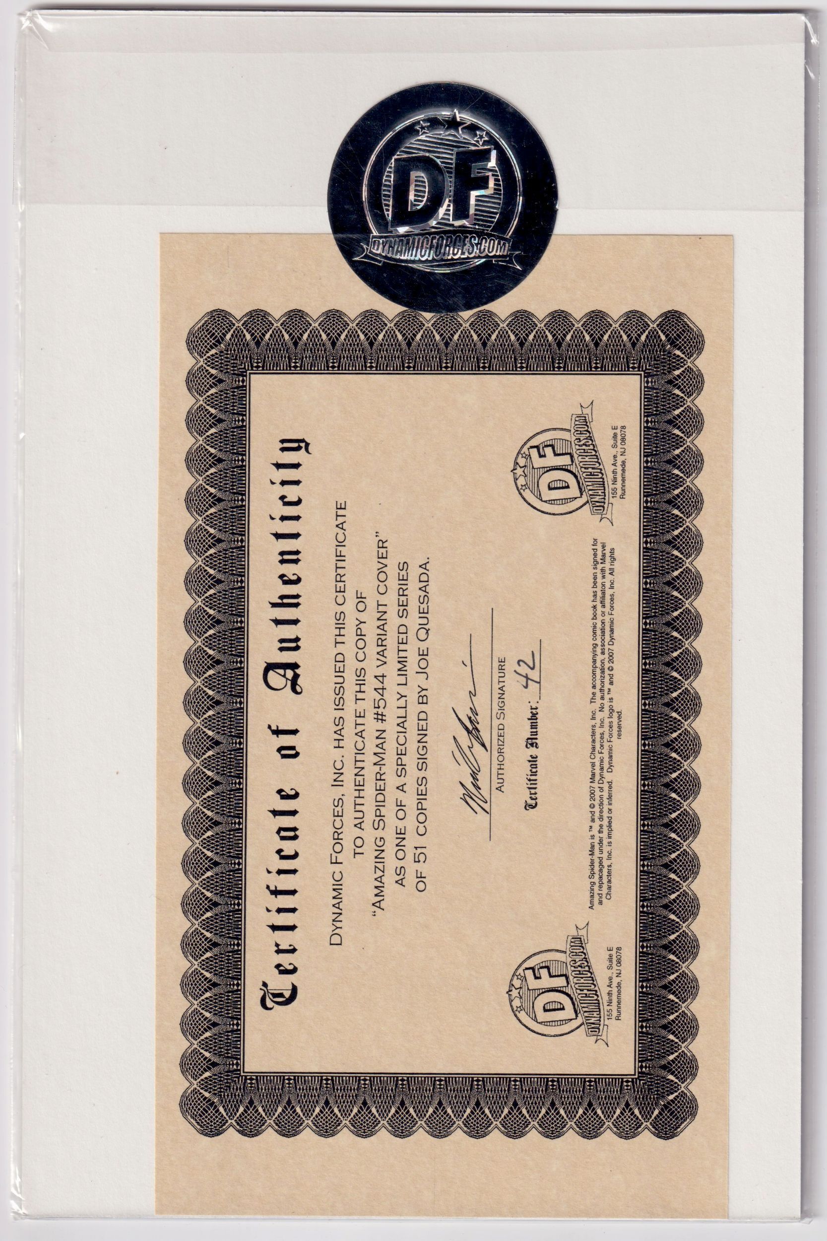 The Amazing Spider-Man #544 Variant Cover (2007) signed / # Joe Quesada DF COA