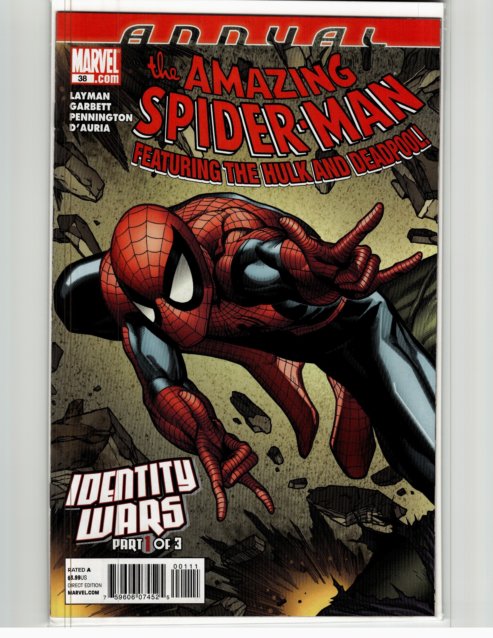 The Amazing Spider-Man Annual #38 (2011) First Appearance: Amazing Spider Note: Ignore any vertical lines shown in the image (its just the scanner).Seller Information