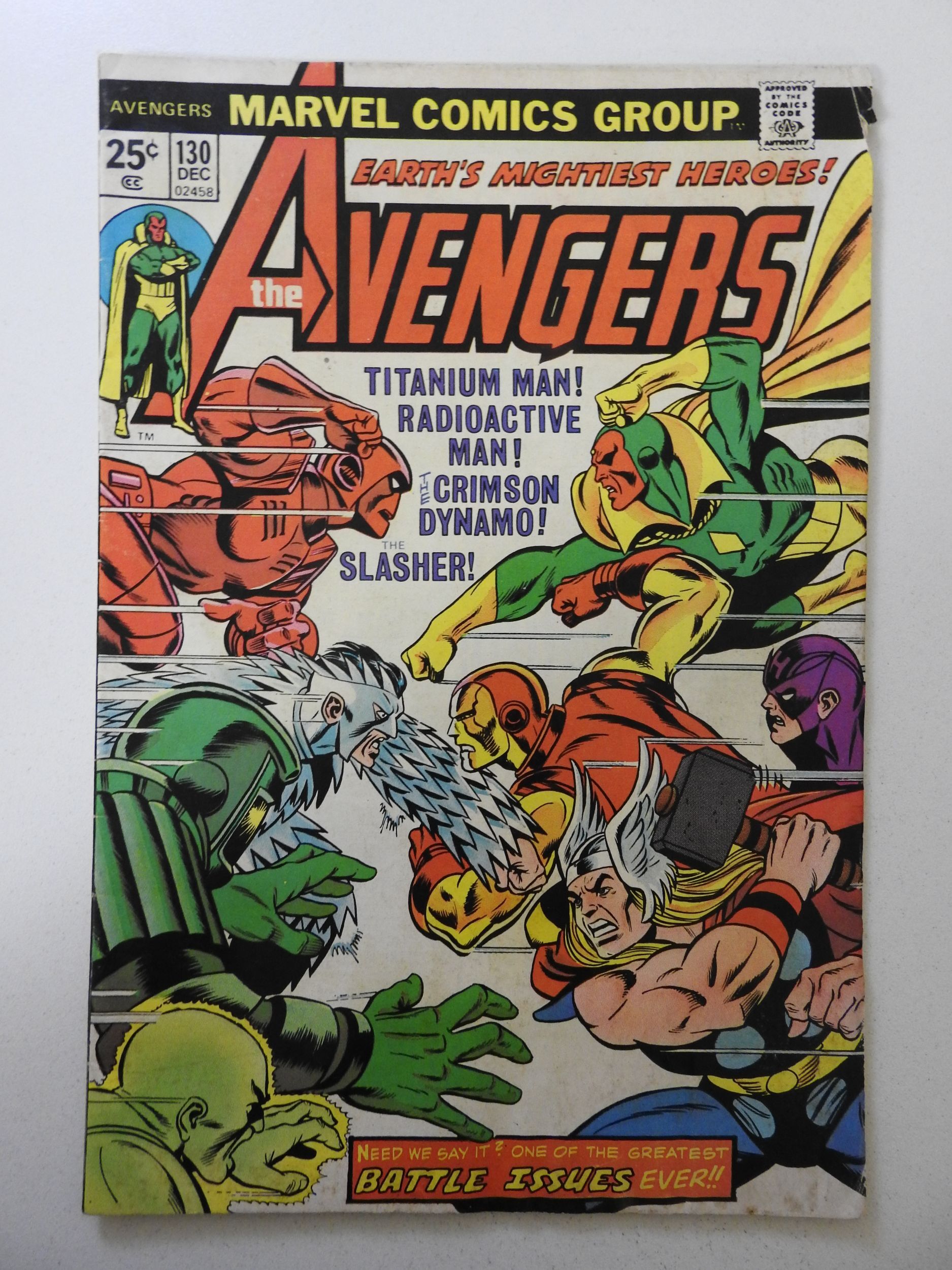 The Avengers #130 (1974) VG- Condition MVS intact! moisture damage