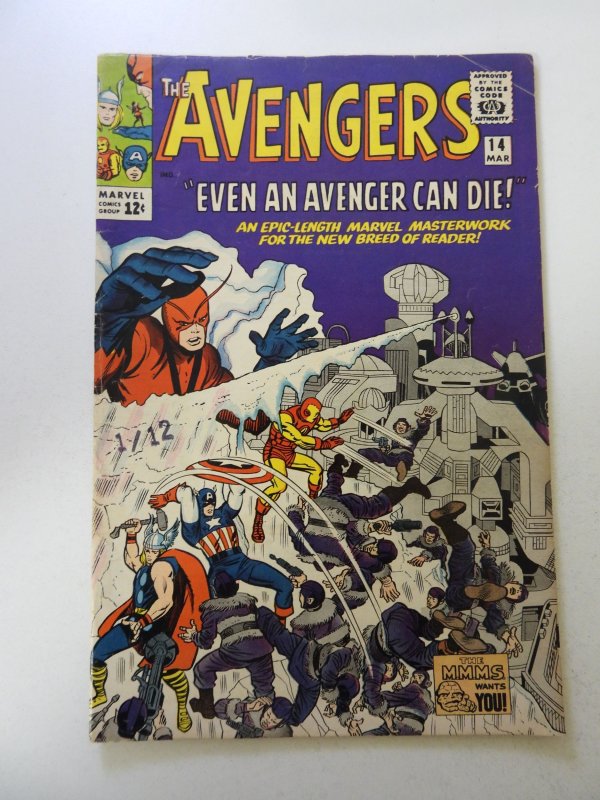 The Avengers #14 (1965) FN- condition date stamp front cover, stains back cover