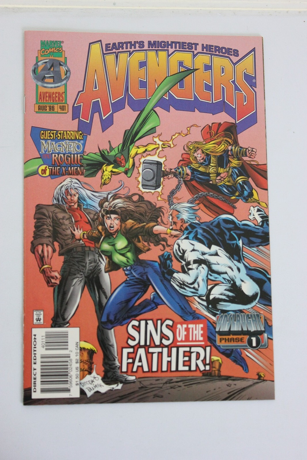 Grade: NMThe Avengers #401 (1996). This comic is in NM condition. This is a quickly assessed grade. Please feel to ask any questions. We do accept returns if you feel the grade is off. Combined Shipping is offered but it must be addressed after the purchase due to the shipping settigns we use. WE refund 3.96 per issue for shipping after the first comic or magazine purchased