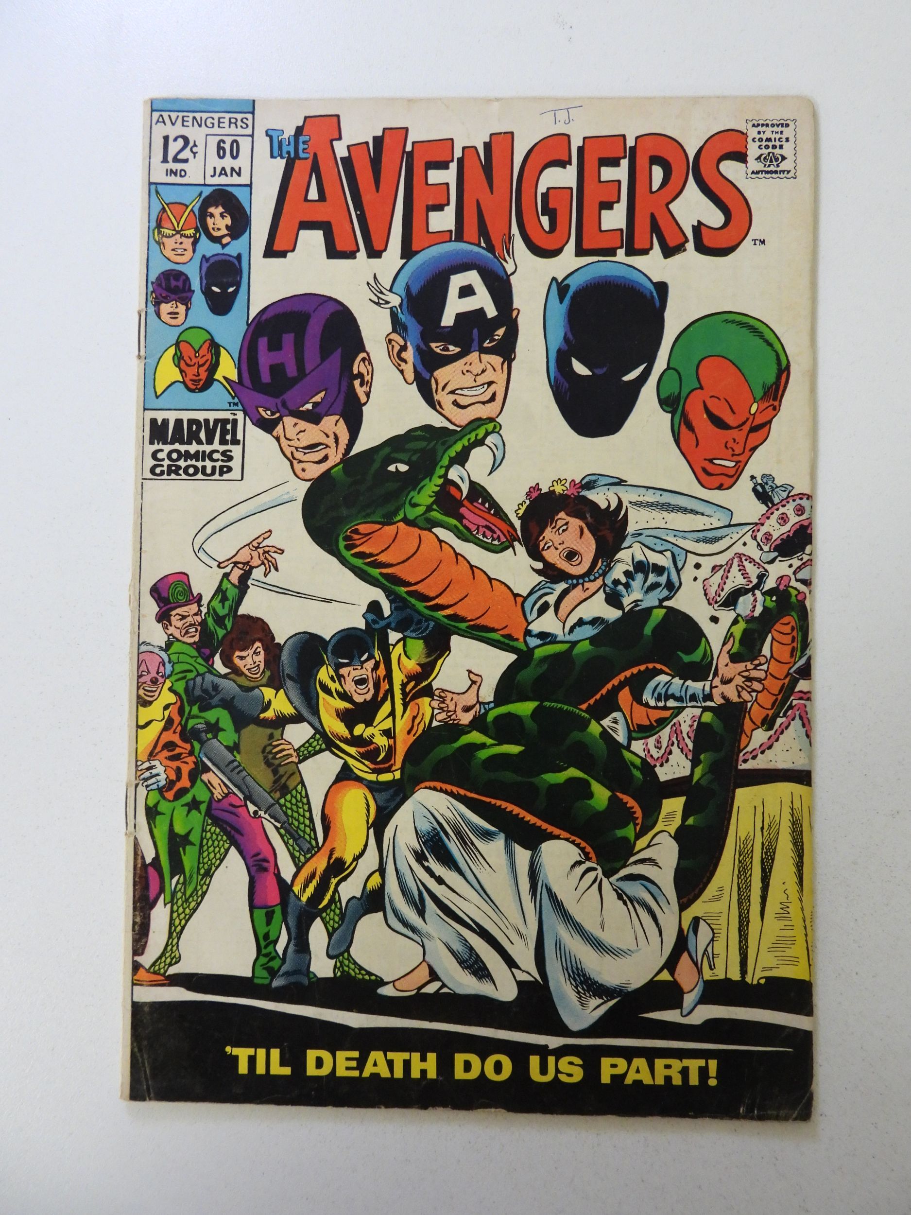 The Avengers #60 (1969) FN- condition "ink front cover"