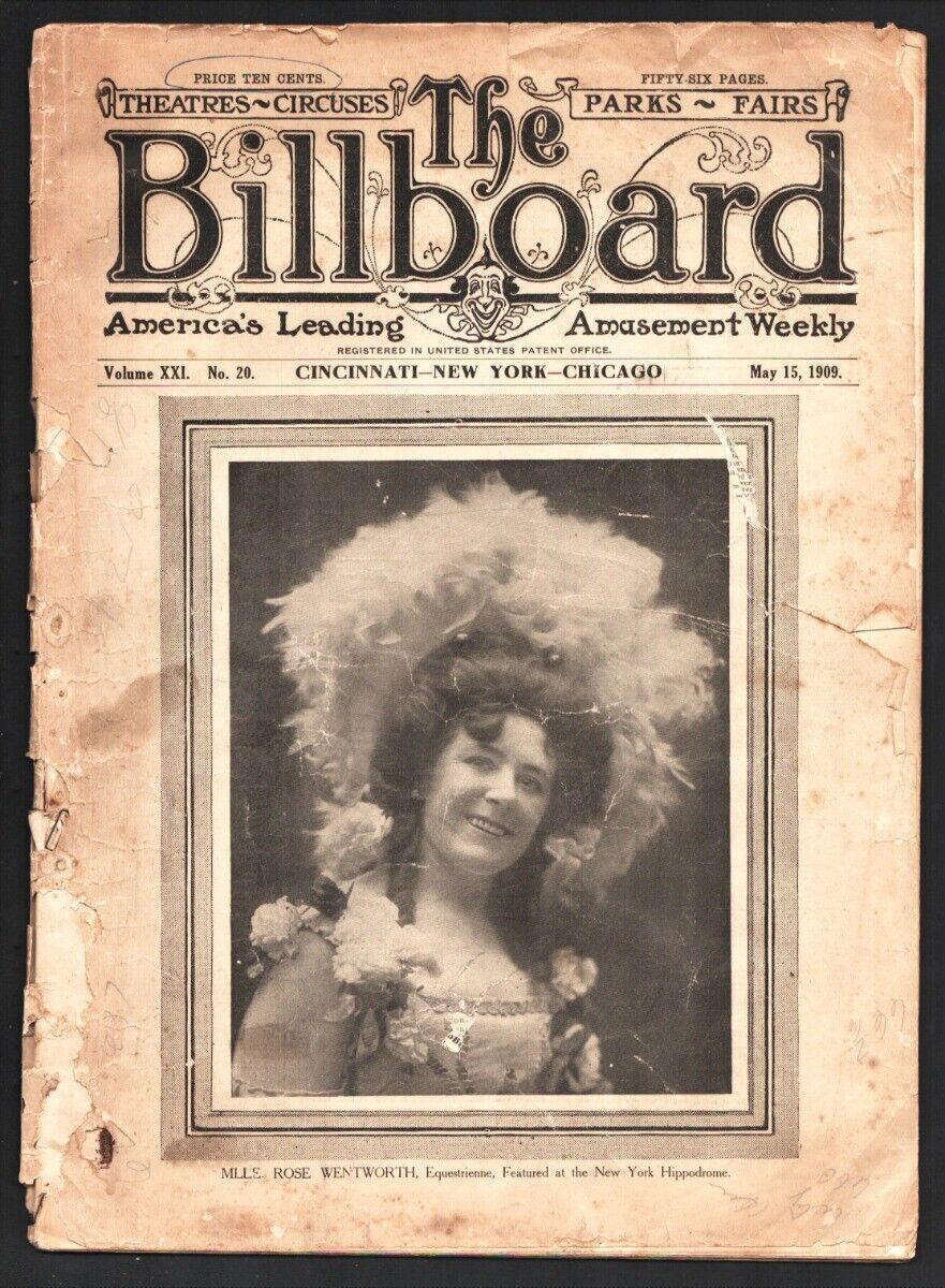 Billboard Issue: / Year: May 15 1908 Condition: G-America's Leading Amusement Weekly -Info on theaters-circuses-parks-fairs & more -Info on arcade games-thrill rides-shows & more -Vintage & historic ads -Over 110 years old Publisher: Sku: MT-32-006 Over 100,000 mail orders processed! Buy with confidence. Track Page Views WithAuctiva's Counter