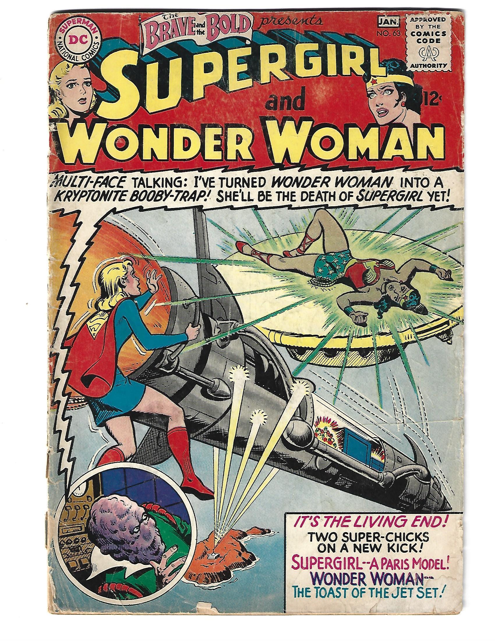 The Brave and the Bold #63 (1966) . I have graded the comic book at GOOD with the following defects: Light stress marks along the spine. Lower staple pulled from the comic book. Pieces missing from the lower left corner. The corners are rounded. Folds in the upper and lower right corners. Light yellowing of the pages.Seller Information