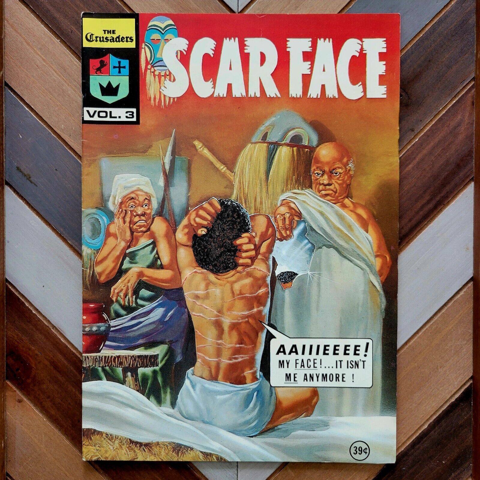 The Crusaders, Vol. #3 (J.T.C. 1974) "SCAR FACE" As an innocent young boy, his face was marred by racial violence. Kruma grew up full of hate. But when a strange man saves his life, he learns that God loves everyone ... Read More
