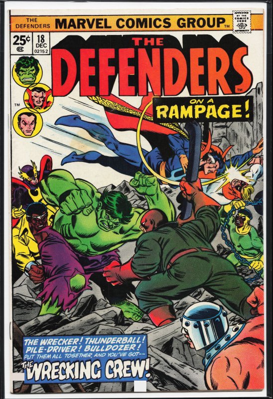 The Defenders #18 (1974) First Appearance: The Wrecking Crew (team) (full)Seller Information