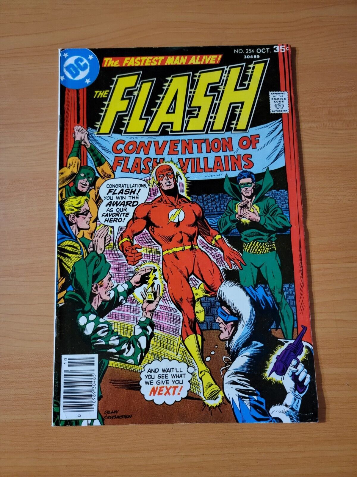 Item DescriptionThe Flash #254 Newsstand VariantPublisher: DC ComicsPublished: 1977Item Grade/ConditionGrade: VERY FINE - NEAR MINTFor more information about this grade and other grades, please see our grading standards.~ WE TAKE HIGH DEFINITION PICTURES OF OUR COMICS ~ For more detail use the ZOOM Function and check them out yourself! ~Shipping Info:United States: Comic Book & Magazine Orders of all sizes, big and small ship for a flat Single Shipping ChargeInternational: We use Calculated Shipping! ~ This insures that you get the LOWEST POSSIBLE COST! ~ Please give us one business day to calculate large orders! The Calculator for Hip is pretty bad for international, contact us if you are looking to order multiple books so we can help you make it work on the back end! As a courtesy to our customers, we insure all orders over 50$ US ~ YOU DONT PAY EXTRA!Delivery TimeWe process and ship all orders within 1 business days. Once shipped, estimated U.S. transit time is 2-10 business days; international 14-21 business days.(Orders placed on Friday afternoon as well as weekends will be shipped the next business day as we do not ship on the weekends).PackingOmnomax Traders has mastered packing to ensure our orders of a "damage-free transport."Using the following methods, we have seen a nearly perfect 99% success rate for undamaged comics!Here is how our orders ship:All Orders :Bagged AND Boarded, ALWAYS NO EXCEPTIONS!Shipped in a Gemini Comic Mailer OR Tightly secured between 4x stiff pieces of corrugated cardboard (double Sandwiched)Sealed on all 4 sides with strong packing tape (Items doesn't even wiggle).:*Now this method is nearly perfect! however we have seen damage happen to items ( only once or twice a year ) ~ this is often due to bad handling by the postal service. Always remember to contact us if this happens! we are committed to quality service!*Offers History