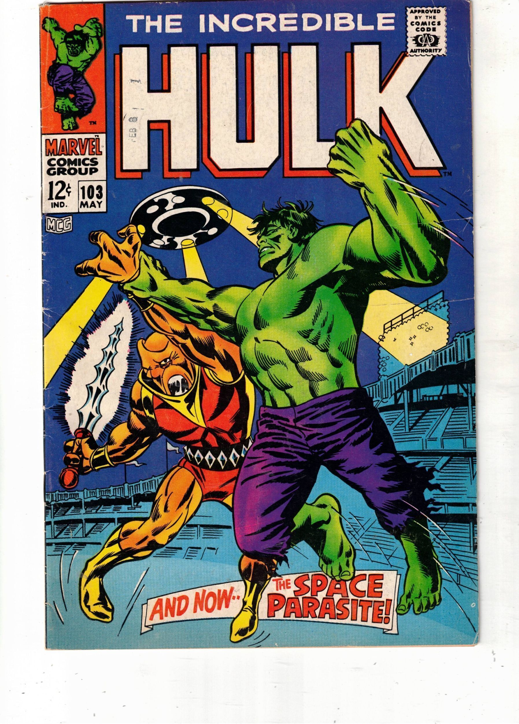 The Incredible Hulk #103 (1968) PRICE DROP$109 2nd Issue! 1st Parasite! VF UTAH!