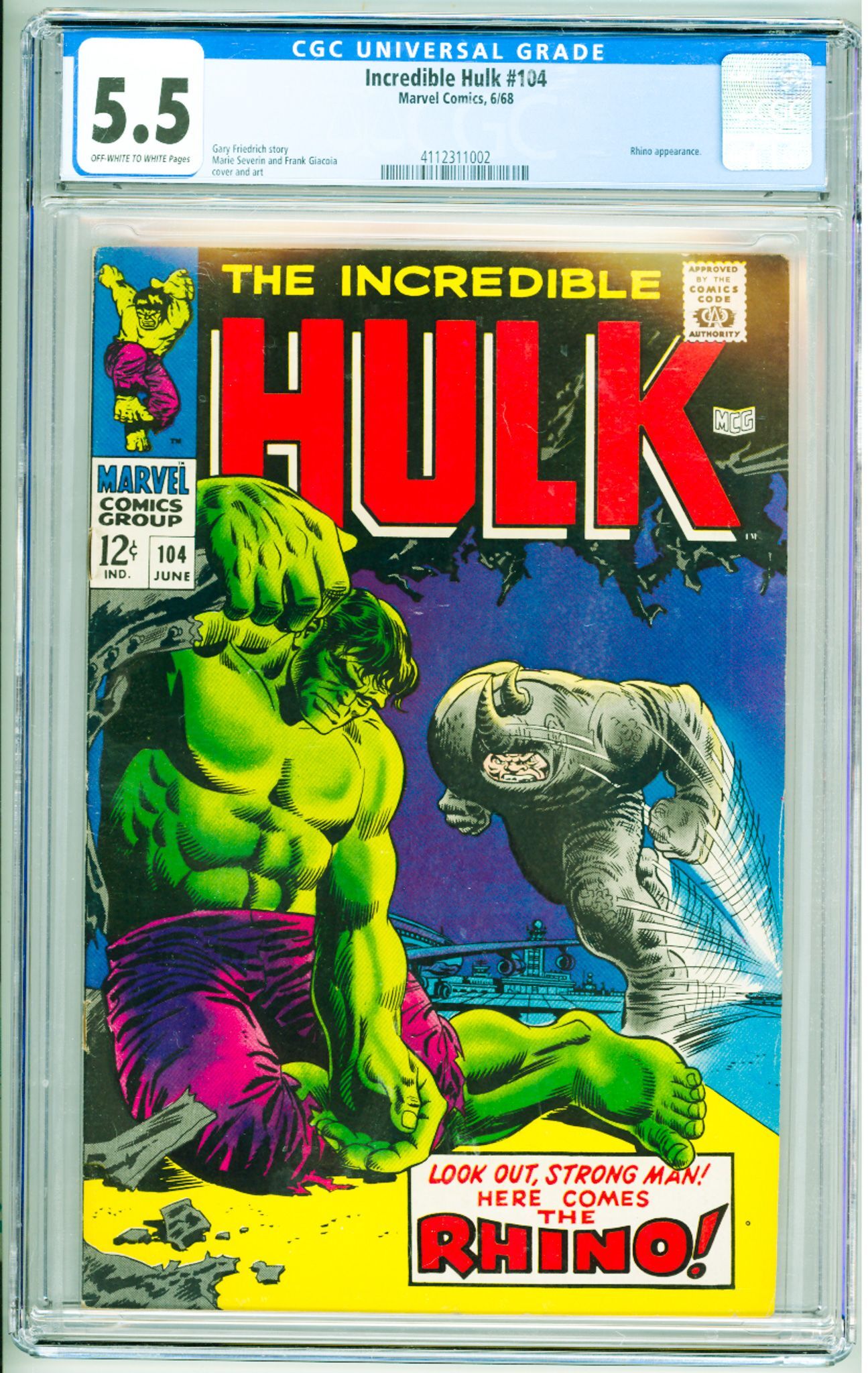 The Incredible Hulk #104 (1968) CGC 5.5! OWW Pages!