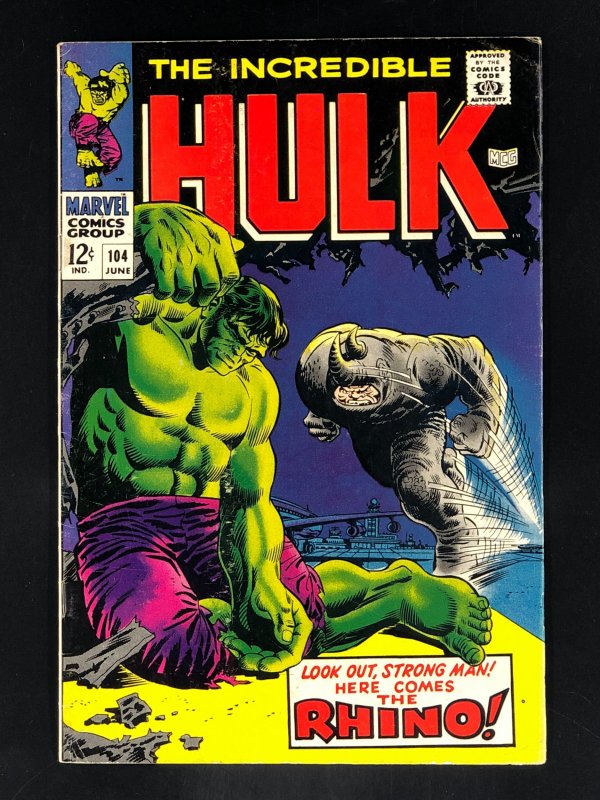 The Incredible Hulk #104 (1968) FN+ Classic Hulk vs Rhino Battle