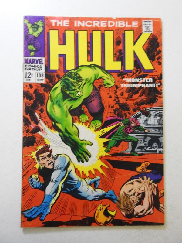 The Incredible Hulk #108 (1968) VG+ Condition centerfold detached top staple