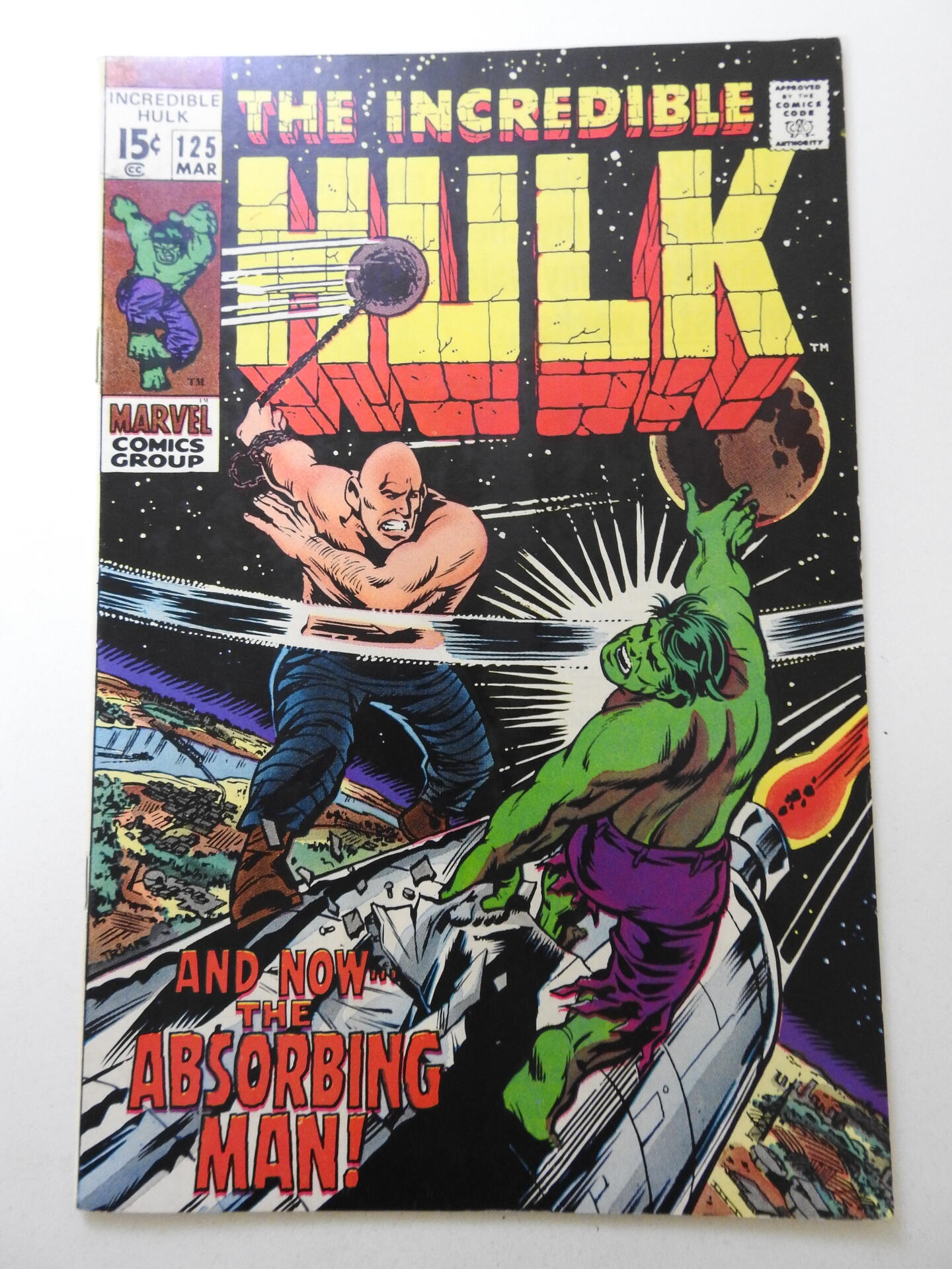 The Incredible Hulk #125 (1970) vs The Absorbing Man! Beautiful VF Condition!