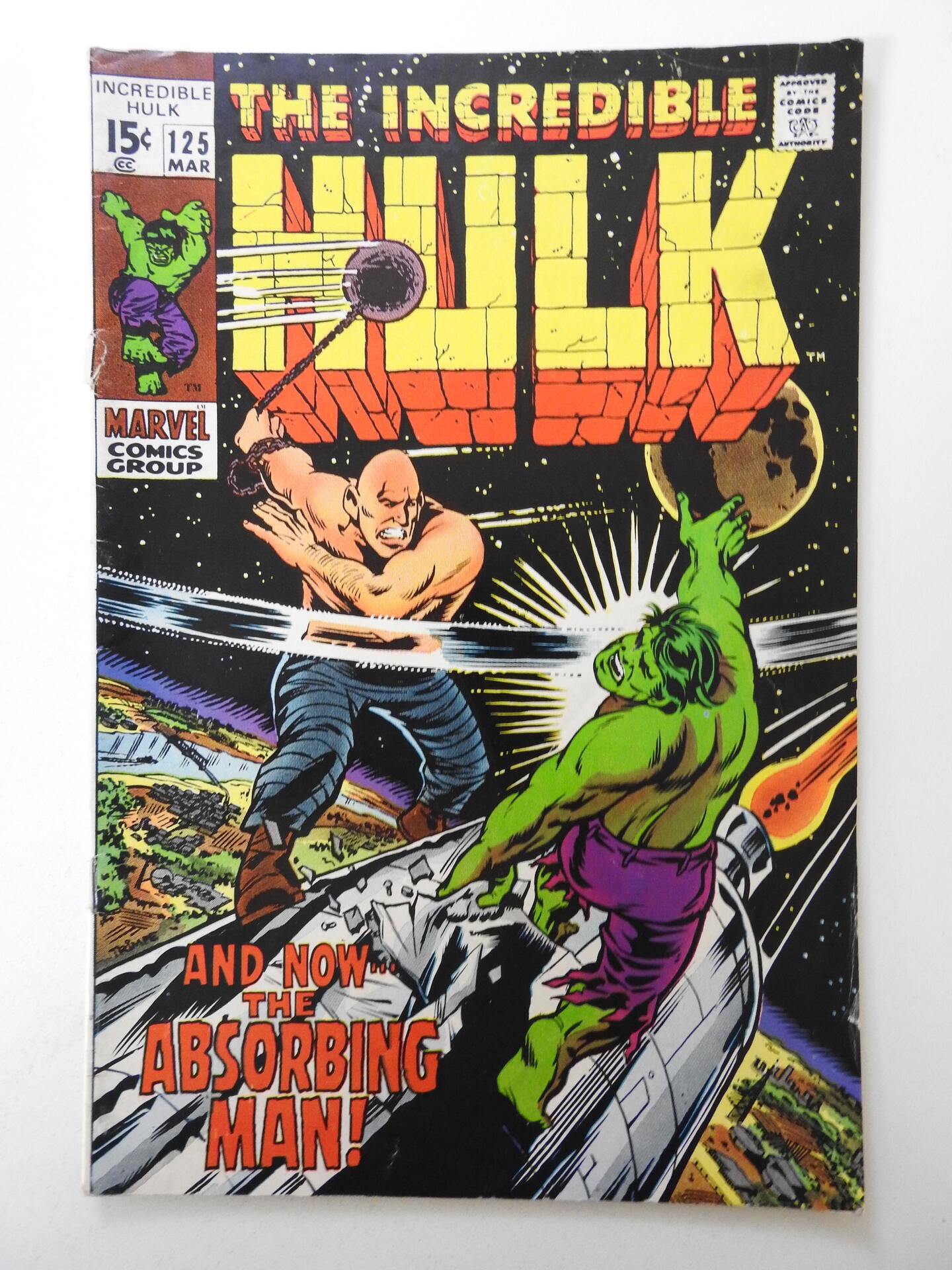 The Incredible Hulk #125 (1970) vs The Absorbing Man VG Condition Top Staple Pop
