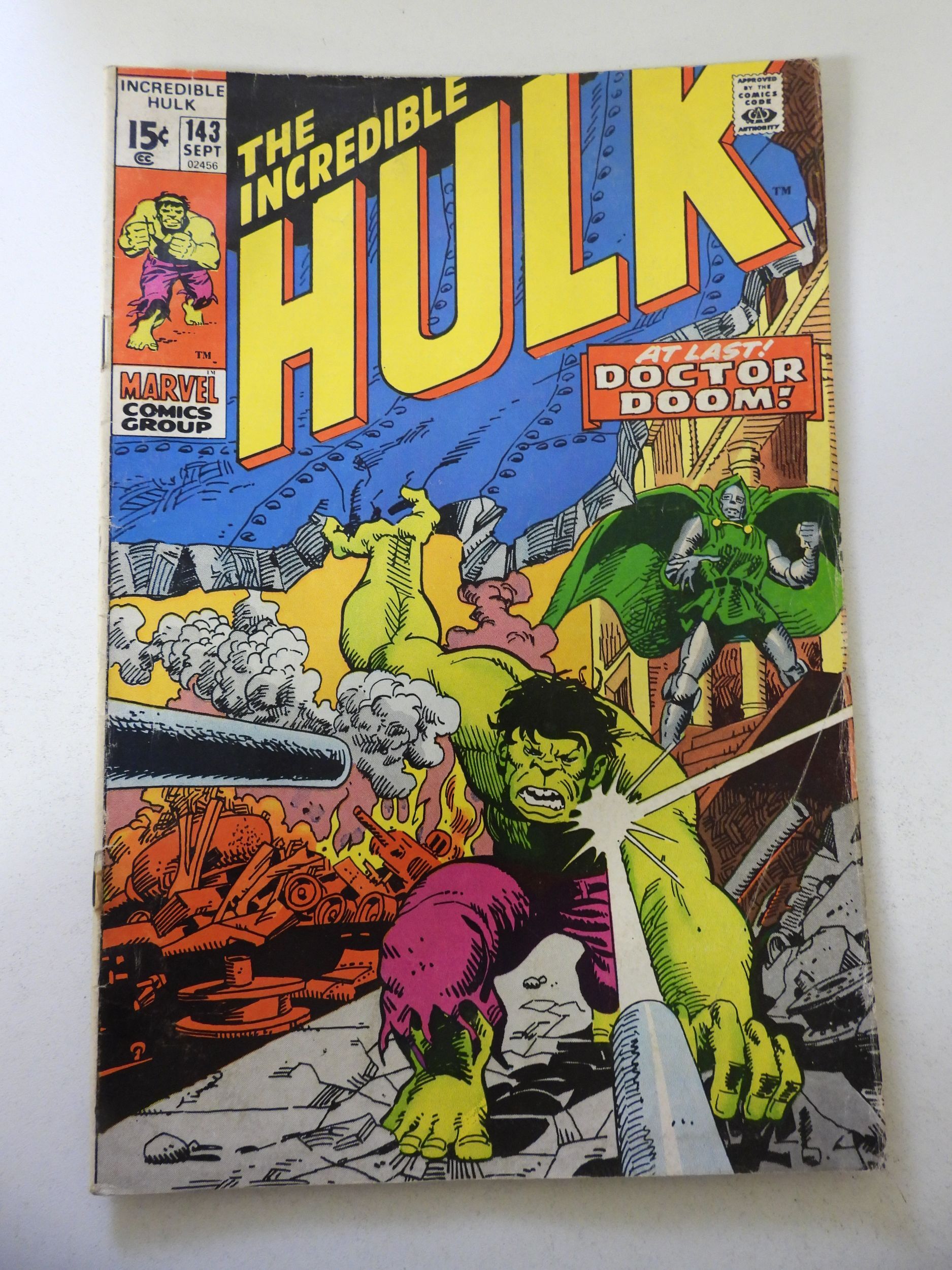 The Incredible Hulk #143 (1971) VG Condition centerfold detached at 1 staple