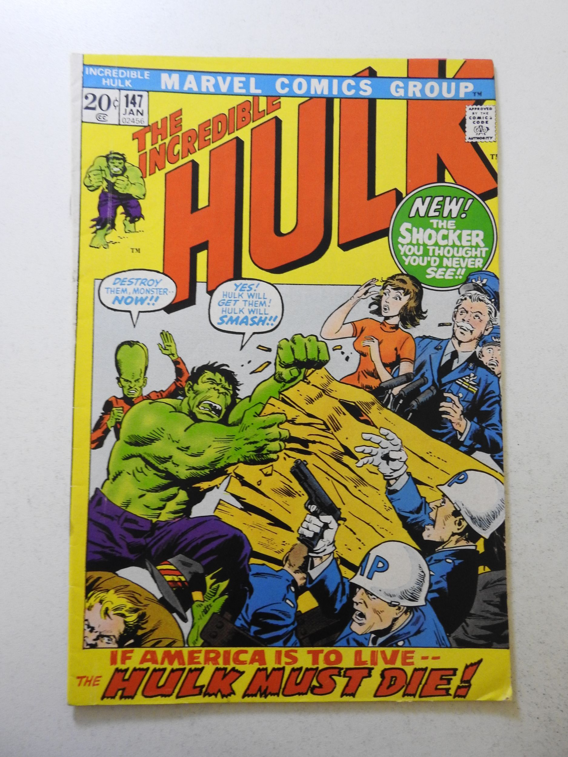 The Incredible Hulk #147 (1972) VG+ Condition rust on staples