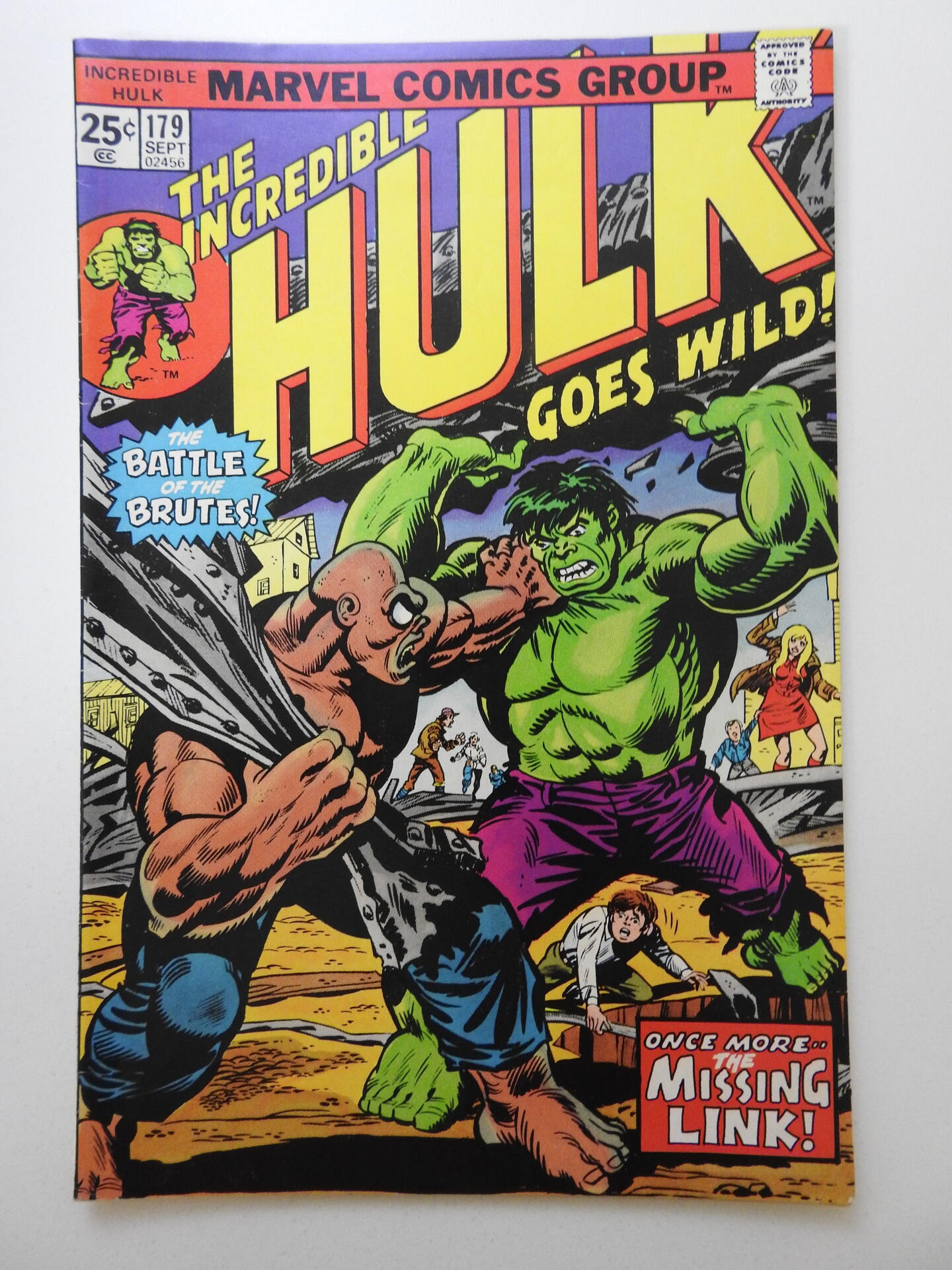 The Incredible Hulk #179 (1974) Battles The Missing Link! Sharp VF- MVS Intact!