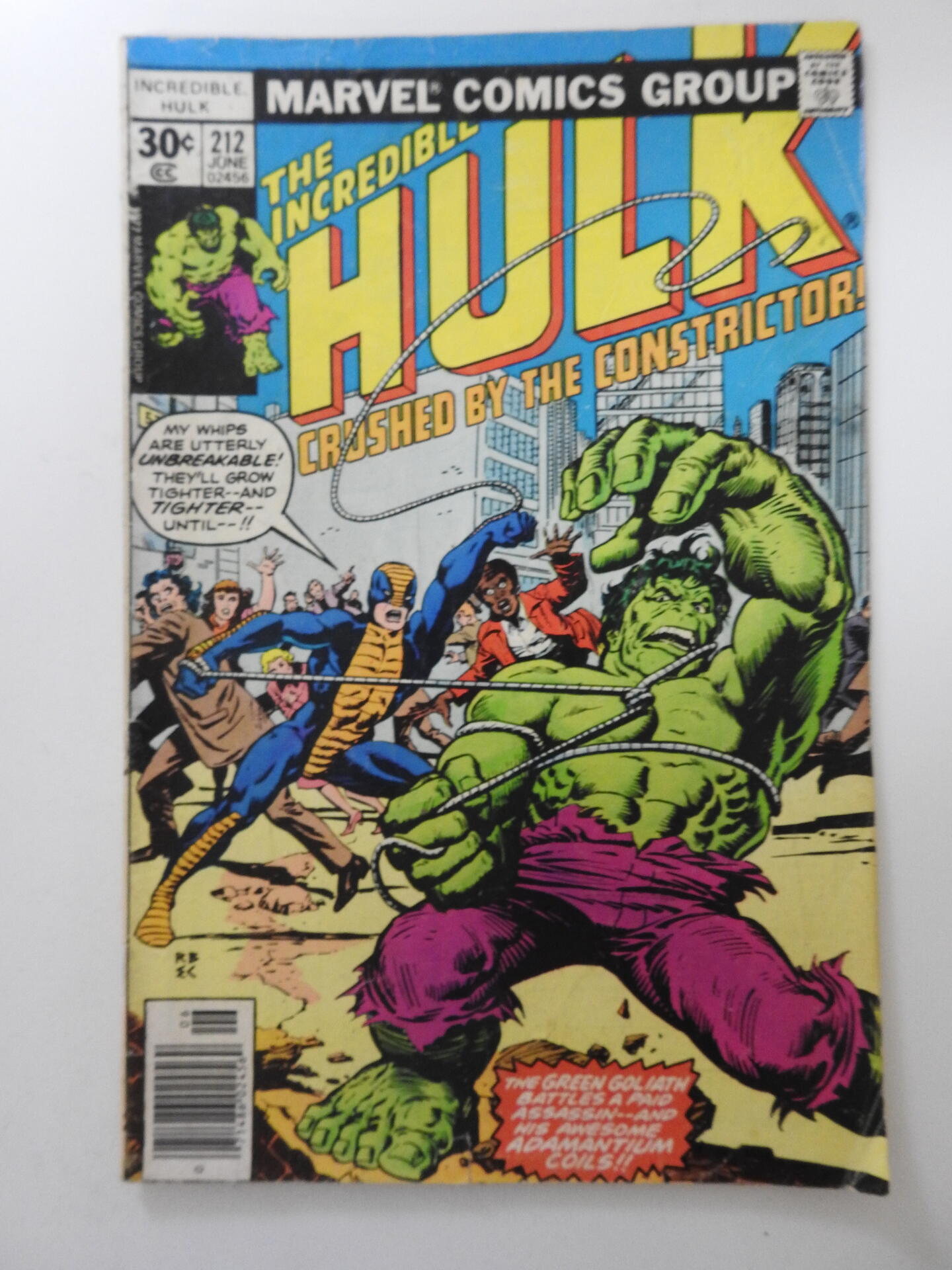 The Incredible Hulk #212 vs The Constrictor! Solid VG- Condition!