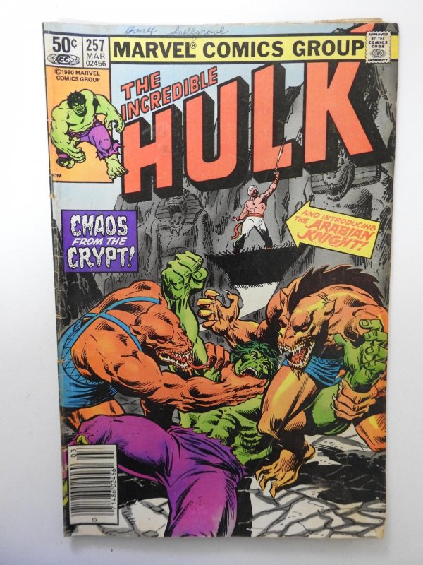 The Incredible Hulk #257 (1981) VG- Condition! centerfold detached bottom staple