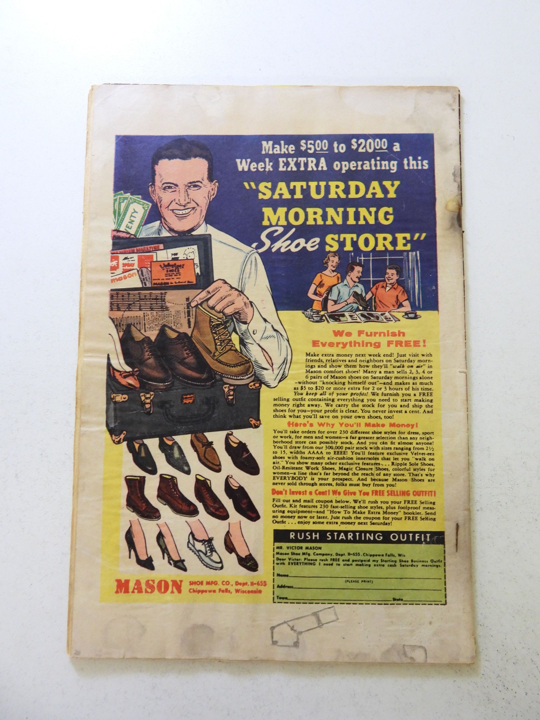 centerfold detached both staples, moisture damage, rusty staplesSeller Information