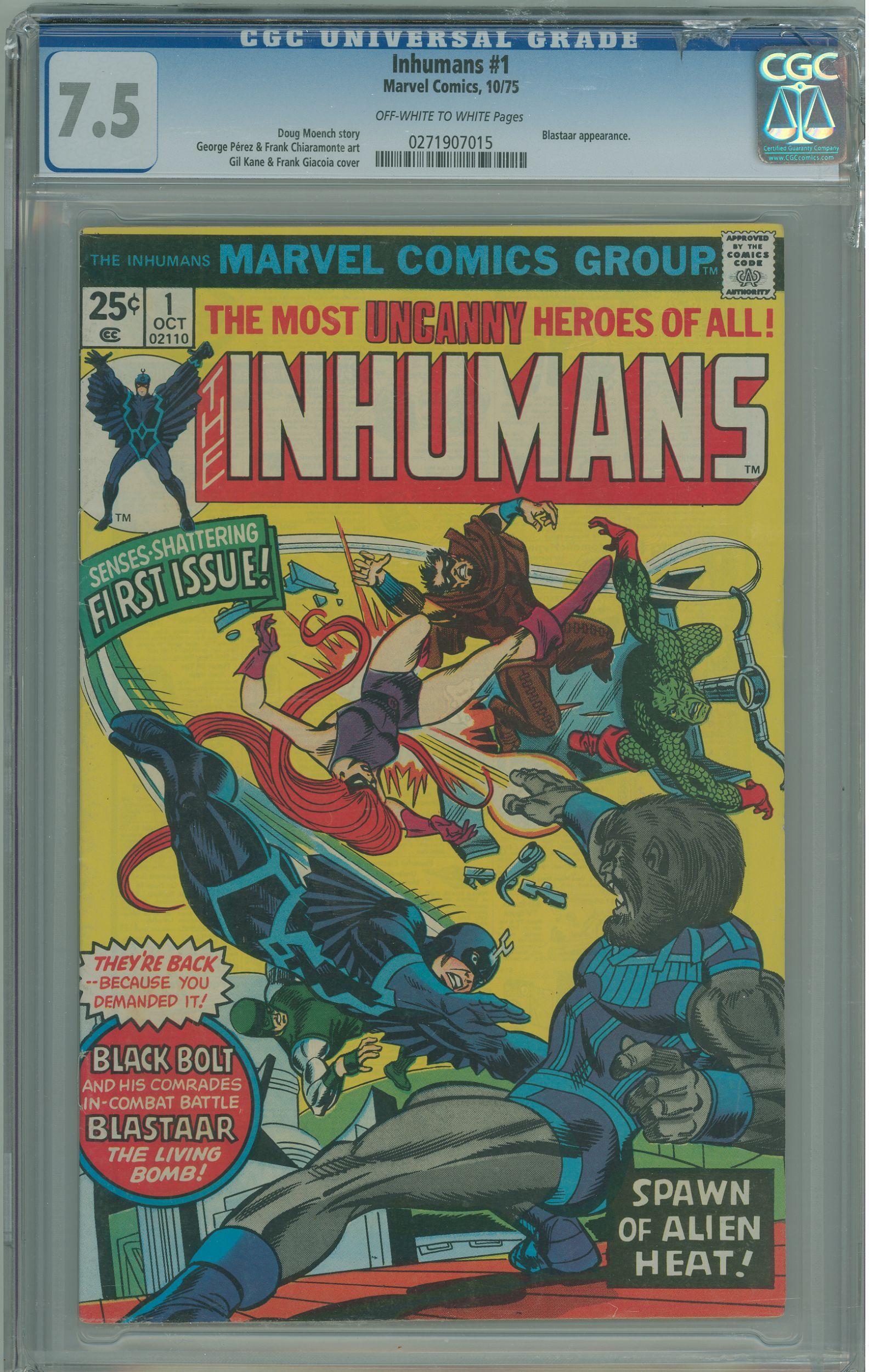 The Inhumans #1 (1975) CGC 7.5 Condition Crack in slab top Right