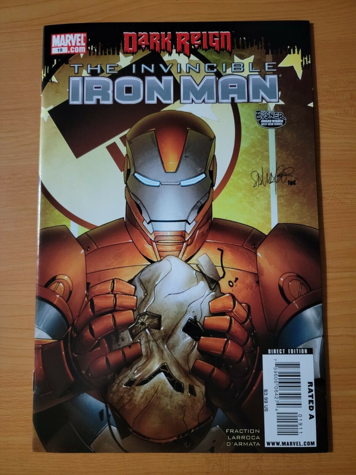 Item DescriptionThe Invincible Iron Man #19Publisher: Marvel ComicsPublished: 2009Item Grade/ConditionGrade: NEAR MINTFor more information about this grade and other grades, please see our grading standards.~ AS ALWAYS, WE TAKE HIGH DEFINITION PICTURES OF MOST OF OUR COMICS ~ For more detail use the ZOOM Function and check them out yourself! ~ Pictures are of the EXACT Comics in this listing!Shipping Info:United States: Orders of all sizes, big and small ship for a flat fee of - $3.50 ~WE LOVE FREE SHIPPING ~ This Standard May not apply to US Orders!~International: We use Calculated Shipping! ~ This insures that you get the LOWEST POSSIBLE COST! ~ Please give us one business day to calculate large orders! As a courtesy to our customers, we insure all orders over 50$ US ~ YOU DONT PAY EXTRA!Delivery TimeWe process and ship all orders within 1 business days. Once shipped, estimated U.S. transit time is 2-10 business days; international 14-21 business days.(Orders placed on Friday afternoon as well as weekends will be shipped the next business day as we do not ship on the weekends).PackingOmnomax Traders has mastered packing to ensure our orders of a "damage-free transport."Using the following methods, we have seen a nearly perfect 99% success rate for undamaged comics!Here is how our orders ship:Orders of 1-10 items:Bagged AND Boarded ( If Comic value is 10$ or More )Tightly secured between 2 stiff pieces of corrugated cardboardSealed on all 4 sides with strong packing tape (Items doesn't even wiggle).Protected in a large mailing envelope Orders of 10 and more:All items are bagged, and bottom item is in a board for extra protection of other items.All items are then placed together in a heavy bag. Tons of heavy packing paper &/Or Bubblewrap shields the items.Durable boxes hold the items*Now this method is nearly perfect! however we have seen damage happen to items ( only once or twice a year ) ~ this is often due to bad handling by the postal service. Always remember to contact us if this happens! we are committed to quality service!*Offers History