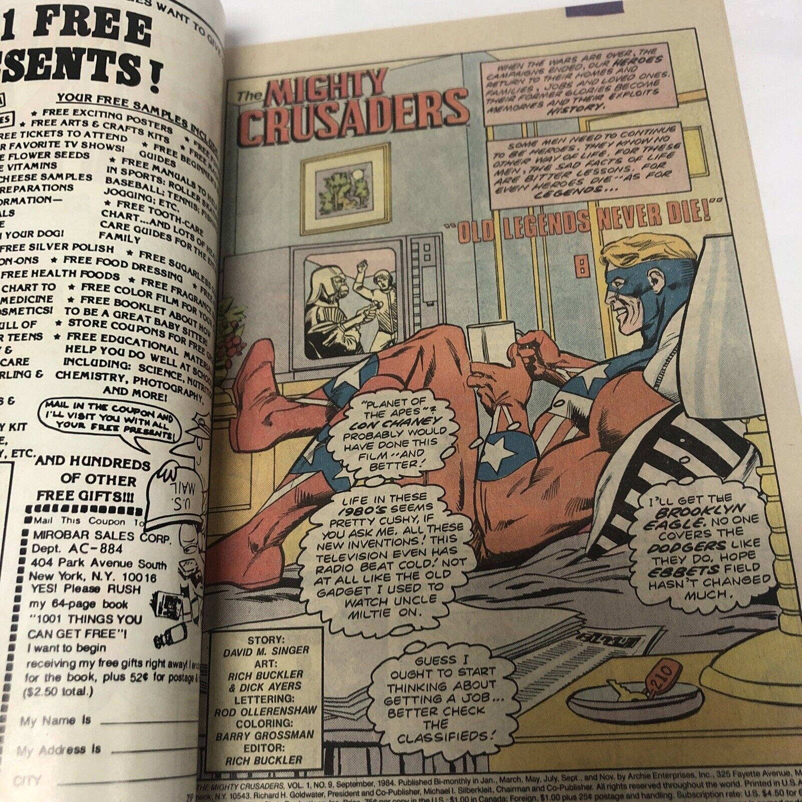The Mighty Crusaders (1984) # 9 (VF) David M. Singer •Buckler• Archie CPV