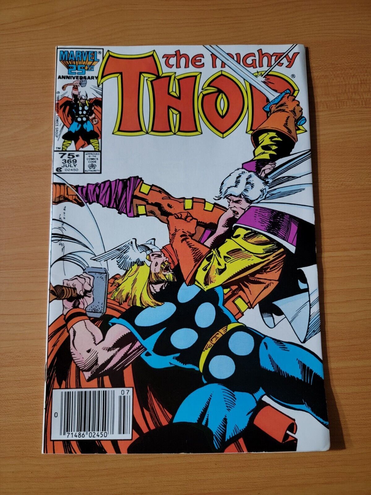 Item DescriptionThe Mighty Thor #369 Newsstand VariantPublisher: Marvel ComicsPublished: 1986Item Grade/ConditionGrade: NEAR MINTFor more information about this grade and other grades, please see our grading standards.~ WE TAKE HIGH DEFINITION PICTURES OF OUR COMICS ~ For more detail use the ZOOM Function and check them out yourself! ~Shipping Info:United States: Comic Book & Magazine Orders of all sizes, big and small ship for a flat Single Shipping ChargeInternational: We use Calculated Shipping! ~ This insures that you get the LOWEST POSSIBLE COST! ~ Please give us one business day to calculate large orders! The Calculator for Hip is pretty bad for international, contact us if you are looking to order multiple books so we can help you make it work on the back end! As a courtesy to our customers, we insure all orders over 50$ US ~ YOU DONT PAY EXTRA!Delivery TimeWe process and ship all orders within 1 business days. Once shipped, estimated U.S. transit time is 2-10 business days; international 14-21 business days.(Orders placed on Friday afternoon as well as weekends will be shipped the next business day as we do not ship on the weekends).PackingOmnomax Traders has mastered packing to ensure our orders of a "damage-free transport."Using the following methods, we have seen a nearly perfect 99% success rate for undamaged comics!Here is how our orders ship:All Orders :Bagged AND Boarded, ALWAYS NO EXCEPTIONS!Shipped in a Gemini Comic Mailer OR Tightly secured between 4x stiff pieces of corrugated cardboard (double Sandwiched)Sealed on all 4 sides with strong packing tape (Items doesn't even wiggle).:*Now this method is nearly perfect! however we have seen damage happen to items ( only once or twice a year ) ~ this is often due to bad handling by the postal service. Always remember to contact us if this happens! we are committed to quality service!*Offers History