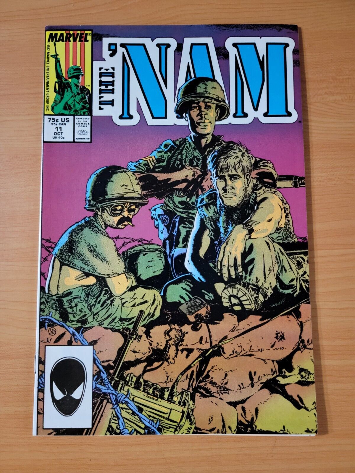 Item DescriptionThe 'Nam #11 Direct Market EditionPublisher: Marvel ComicsPublished: 1987Item Grade/ConditionGrade: NEAR MINTFor more information about this grade and other grades, please see our grading standards.~ WE TAKE HIGH DEFINITION PICTURES OF OUR COMICS ~ For more detail use the ZOOM Function and check them out yourself! ~Shipping Info:United States: Comic Book & Magazine Orders of all sizes, big and small ship for a flat Single Shipping ChargeInternational: We use Calculated Shipping! ~ This insures that you get the LOWEST POSSIBLE COST! ~ Please give us one business day to calculate large orders! The Calculator for Hip is pretty bad for international, contact us if you are looking to order multiple books so we can help you make it work on the back end! As a courtesy to our customers, we insure all orders over 50$ US ~ YOU DONT PAY EXTRA!Delivery TimeWe process and ship all orders within 1 business days. Once shipped, estimated U.S. transit time is 2-10 business days; international 14-21 business days.(Orders placed on Friday afternoon as well as weekends will be shipped the next business day as we do not ship on the weekends).PackingOmnomax Traders has mastered packing to ensure our orders of a "damage-free transport."Using the following methods, we have seen a nearly perfect 99% success rate for undamaged comics!Here is how our orders ship:All Orders :Bagged AND Boarded, ALWAYS NO EXCEPTIONS!Shipped in a Gemini Comic Mailer OR Tightly secured between 4x stiff pieces of corrugated cardboard (double Sandwiched)Sealed on all 4 sides with strong packing tape (Items doesn't even wiggle).:*Now this method is nearly perfect! however we have seen damage happen to items ( only once or twice a year ) ~ this is often due to bad handling by the postal service. Always remember to contact us if this happens! we are committed to quality service!*Offers History