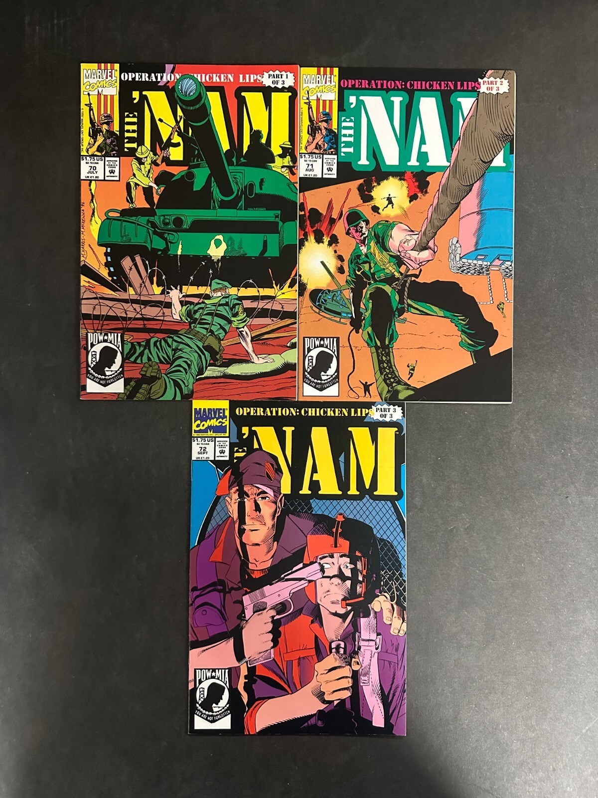 SILVER AGE COMICS 22-55 31st STREET ASTORIA, NY 11105 Description: The 'Nam (1986) #'s 70 71 72 (Operation Chicken Lips) Complete VF- (7.5) LotAnd as always, you found it here at the home of NO RESERVE auctions, Silver Age Comics Yes, we combine shipping!!