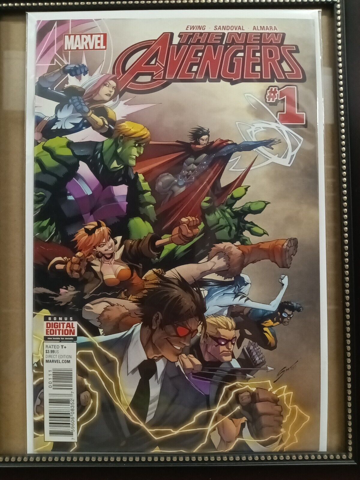 Grade: 9.4 Near MintGet your hands on this amazing and rare edition of The New Avengers #1 by Marvel Comics, featuring the incredible superheroes of X-Men and Avengers. This single issue comic book is a first printing with a variant cover, boarded and in 9.4 Near Mint condition. With the incredible art of Al Ewing and Gerardo Sandoval, and featuring the characters of Wiccan, Hawkeye (Clint Barton), Hulkling, and Sunspot, this comic book is a must-have for any fan of action, superheroes, and adventure. Don't miss out on adding this 1st edition to your collection today!