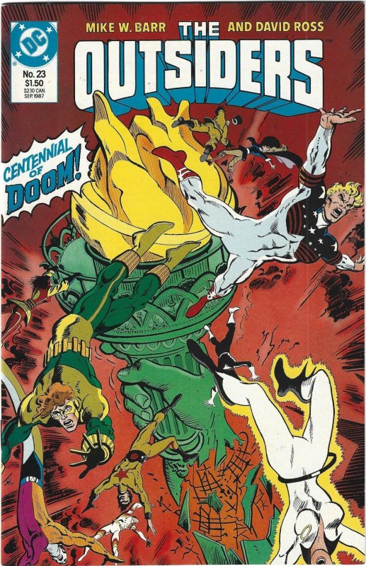 The Outsiders #23 (1987) I have graded the comic book at FINE+ with the following defects: Light stress marks along the spine. The corners are rounded. There is light yellowing of the pages.
