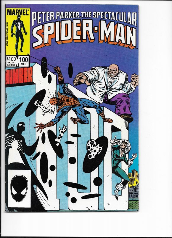 The Spectacular Spider-Man #100 Direct Edition (1985), VF condition, excellent front cover, back cover has a crease in it.