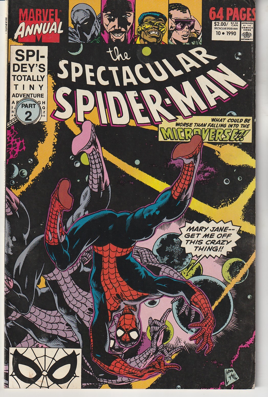 The Spectacular Spider-Man Annual #10 (1990)Fine condition – cracks and creases on front and back of spine. Cover and interior pages are well intact, but pages show no signs of fading.