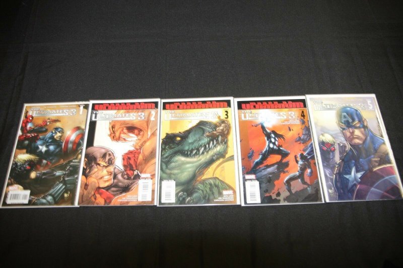 The ultimates 3 1-5 full set/lot 5pc grand total piece count 5pcthis item was uploaded by hr.If you have any specific questions or requests, please ask us prior to ordering and we'll get back to you as soon as we can. If there are any problems with your order whatsoever, please message us before leaving feedback and we'll be happy to work with you to fix the situation! We ship worldwide, combine purchases, and charge exact shipping. The price may vary based on size, weight, and location. If you are automatically overcharged for shipping, message us and we'll be happy to revise the invoice or refund you the excess amount. If you have any questions regarding shipping, please message us. International buyers - please note: import duties, taxes, and charges are not included in the item price or shipping cost. These charges are the buyer's responsibility. Please check with your country's customs office to determine what these additional costs will be prior to bidding or buying. Payment can be made by paypal and credit cards directly. 87,000+ items in total in my Hip store! Frequently asked questions: when are your operation hours?Our in office hours are monday - friday, 11 am - 9 pm. We are not open on weekends, so if you send us a request on friday evening we won't get back to you until monday afternoon. Please don't take it as us ignoring you! We will work on your request monday and get back to you as soon as we can. Also, if you order from us on a friday evening or saturday morning we won't start processing your order until we open on monday. That means on monday it will be pulled and prepped for shipping, then picked up by the postman on tuesday morning.When will you ship my item? The tracking hasn't moved.We realize you're eager to get your item, so if the tracking hasn't moved in a few days please don't be concerned. We give the postman a lot of packages daily, sometimes as many as 100, so he does not scan each item for us upon pickup as he says it would be too time consuming for him to do so. If you get a tracking number from us, that almost always means your item was picked up by the postman the next business day. The usps is also imperfect. There are times when the tracking won't even show movement until it's in your area's regional distribution center. This is normal in our experience. What is the difference between a run and a lot?Good question. A run will be a collection of consecutive issues with no breaks in between them. If it says run of #s 1 - 50 you will receive 50 consecutive comics. A lot will be within a certain range, so a 50pc lot will not contain consecutive books.Is the item pictured the exact one for sale?Yes! We don't use stock images and go through great lengths to scan or photograph everything we list. The item pictured is exactly what you should receive unless it is a fixed price listing with multiple items available. How do you grade?Grading is very subjective, but we are professionals with decades of grading experience between us who try the best we can to accurately describe the condition of the items we list. Anthony is an overstreet comic book price guide advisor please see the grading chart below for a breakdown of how we grade: note: we don't grade any raw books higher than 9.2, as once you go higher than that grading gets really subjective. If you buy a nm book from us, it may very well be higher than 9.2 but we play it safe and grade conservatively. 9.2 nm near mint 9.0 vf/nm very fine/near mint 8.5 vf+ very fine+ 8.0 vf very fine 7.5 vf- very fine- 7.0 fn/vf fine/very fine 6.5 fn+ fine+ 6.0 fn fine 5.5 fn- fine- 5.0 vg/fn very good/fine 4.5 vg+ very good+ 4.0 vg very good 3.5 vg- very good- 3.0 gd/vg good/very good 2.5 gd+ good+ 2.0 gd good 1.8 gd- good- 1.5 fr/gd fair/good 1.0 fr fair 0.5 pr poorhow do you ship comics? We ship in rigid cardboard mailers to protect your comic book from the worst the mail system has to offer. Price varies based on the number of books you purchase, but we try to keep costs as low as we can and charge exact shipping. If it looks unusually high to you please send us a message and we'll be happy to double check for you. Do you combine shipping? Yes, of like items. Such as: several comics can fit in one cardboard mailer, as can more than one record. Multiple art pages can easily be combined because they are light and thin. Where combined shipping differs is with size and weight. For instance, two statues require a much bigger box. Same goes for cgcs, as the package gets bigger and heavier as you go. Do you ship well? I've had some bad experiences... You needn't worry; we are professionals who value your business and want your item to arrive safely as much as you do. I have been collecting for over 30 years. I send out items the way i would like to receive them. The tracking says my item is "out for delivery" in new jersey. Why is that?If the tracking indicates that the item is "out for delivery" in nj don't worry, it's just what the tracking says when it's carried over from the postman to the sorting center. This is normal for our post office and will not impact you receiving your item in a timely matter.I changed my mind after successfully winning the auction or fixed price listing, will you cancel the transaction? Please only bid or hit buy it now if you are willing to follow through and pay for the item, we will not cancel the transaction. As a seller, Hip penalizes us every time we cancel an order, so it is detrimental to our business to do so. Therefore if you will not pay, then you'll have to let Hip cycle this to an "unpaid item" and accept whatever action Hip deems necessary. 87,000+ items in total in my Hip store! Meet our staff:pictured left to right, my employees: chris, connelly, bobby, & shannon alongside my family: sharon, myself (anthony), cameron, aj, and jamison snyderas seen on tv: i have been buying and selling artwork and comics for about 20 years. If you are new to buying art or comics feel free to ask an