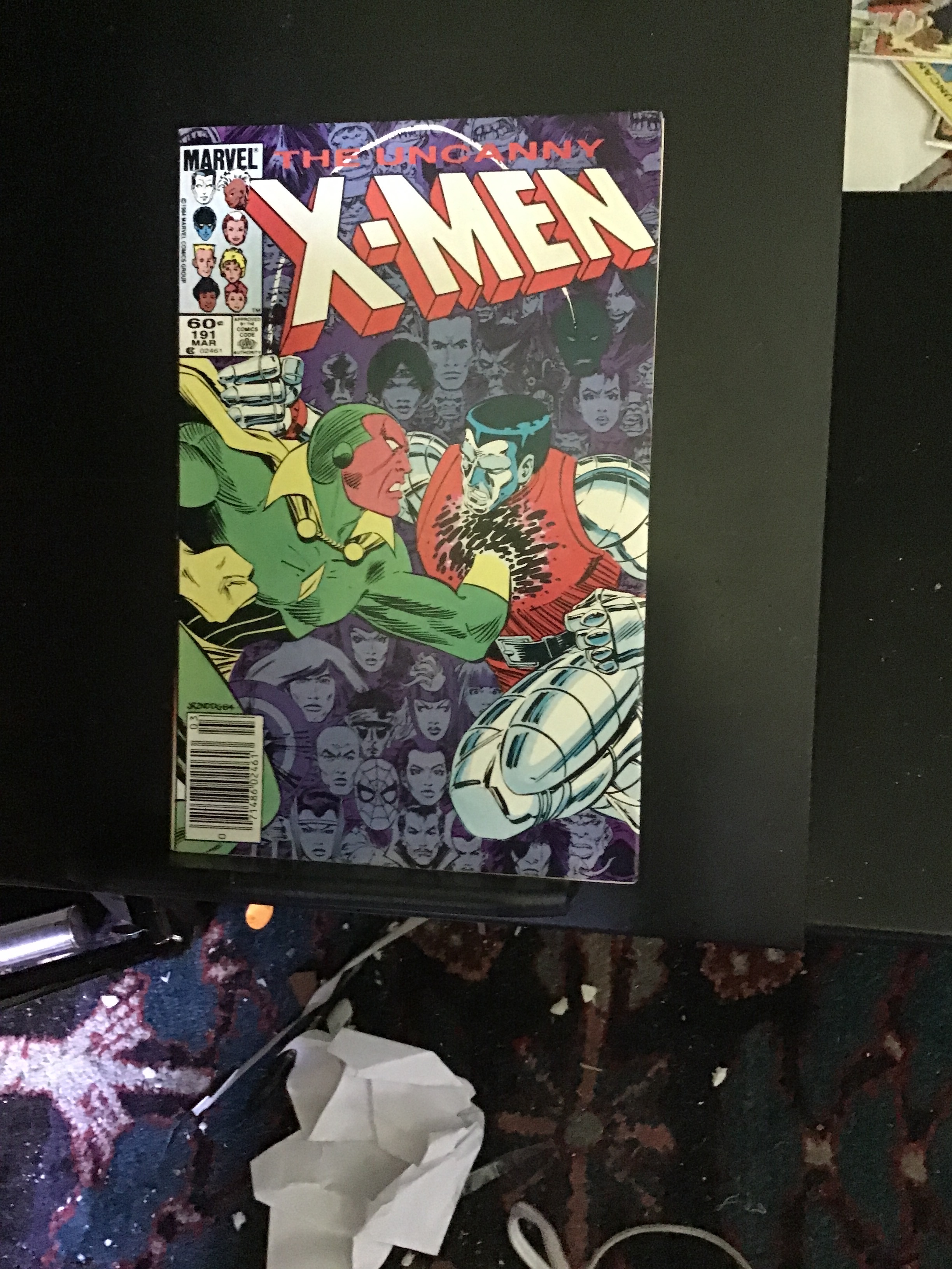 The Uncanny X-Men #191 (1985) This book has deep rich color and very nice eye appeal on this time classic uncanny X-Men cover! With cream/slight heavy cream tint pages and white inside covers. The book is well attached at the spine and the centerfold staples. We have adjusted the grade accordingly for the page quality of this book as it should be near mint plus wow! With wear appropriate grade. Note: any glare or shadows on the photograph are from the camera and are not on the book unless noted.Seller Information