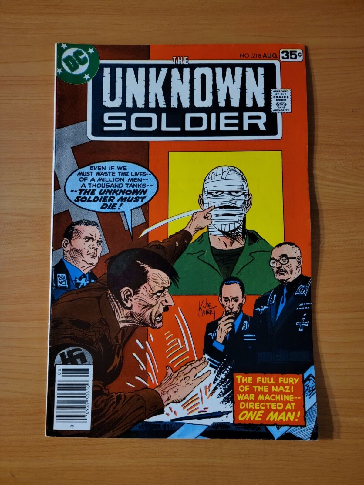 Item DescriptionThe Unknown Soldier #218 Newsstand VariantPublisher: DC ComicsPublished: 1978Item Grade/ConditionGrade: NEAR MINTFor more information about this grade and other grades, please see our grading standards.~ WE TAKE HIGH DEFINITION PICTURES OF OUR COMICS ~ For more detail use the ZOOM Function and check them out yourself! ~Shipping Info:United States: Comic Book & Magazine Orders of all sizes, big and small ship for a flat Single Shipping ChargeInternational: We use Calculated Shipping! ~ This insures that you get the LOWEST POSSIBLE COST! ~ Please give us one business day to calculate large orders! The Calculator for Hip is pretty bad for international, contact us if you are looking to order multiple books so we can help you make it work on the back end! As a courtesy to our customers, we insure all orders over 50$ US ~ YOU DONT PAY EXTRA!Delivery TimeWe process and ship all orders within 1 business days. Once shipped, estimated U.S. transit time is 2-10 business days; international 14-21 business days.(Orders placed on Friday afternoon as well as weekends will be shipped the next business day as we do not ship on the weekends).PackingOmnomax Traders has mastered packing to ensure our orders of a "damage-free transport."Using the following methods, we have seen a nearly perfect 99% success rate for undamaged comics!Here is how our orders ship:All Orders :Bagged AND Boarded, ALWAYS NO EXCEPTIONS!Shipped in a Gemini Comic Mailer OR Tightly secured between 4x stiff pieces of corrugated cardboard (double Sandwiched)Sealed on all 4 sides with strong packing tape (Items doesn't even wiggle).:*Now this method is nearly perfect! however we have seen damage happen to items ( only once or twice a year ) ~ this is often due to bad handling by the postal service. Always remember to contact us if this happens! we are committed to quality service!*Offers History