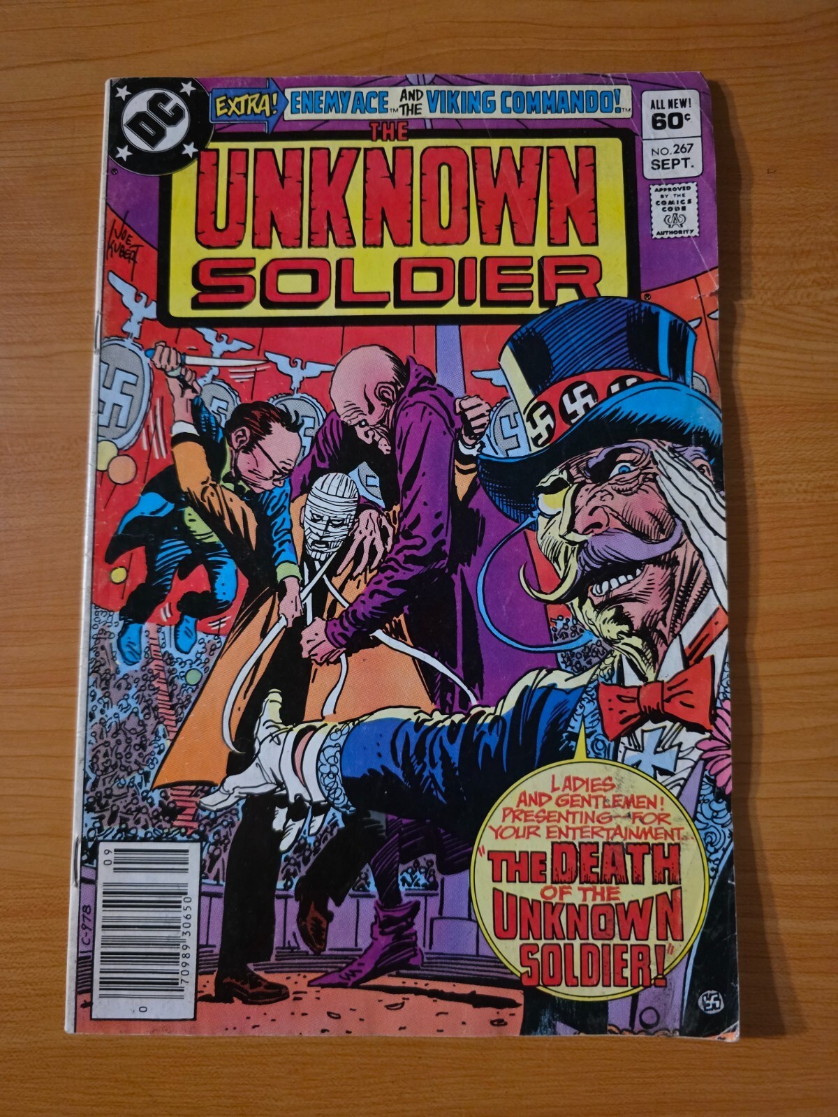 Item DescriptionThe Unknown Soldier #267 Newsstand Variant Publisher: DC ComicsPublished: 1982Item Grade/ConditionGrade: FINEFor more information about this grade and other grades, please see our grading standards.~ WE TAKE HIGH DEFINITION PICTURES OF OUR COMICS ~ For more detail use the ZOOM Function and check them out yourself! ~Shipping Info:United States: Comic Book & Magazine Orders of all sizes, big and small ship for a flat Single Shipping ChargeInternational: We use Calculated Shipping! ~ This insures that you get the LOWEST POSSIBLE COST! ~ Please give us one business day to calculate large orders! The Calculator for Hip is pretty bad for international, contact us if you are looking to order multiple books so we can help you make it work on the back end! As a courtesy to our customers, we insure all orders over 50$ US ~ YOU DONT PAY EXTRA!Delivery TimeWe process and ship all orders within 1 business days. Once shipped, estimated U.S. transit time is 2-10 business days; international 14-21 business days.(Orders placed on Friday afternoon as well as weekends will be shipped the next business day as we do not ship on the weekends).PackingOmnomax Traders has mastered packing to ensure our orders of a "damage-free transport."Using the following methods, we have seen a nearly perfect 99% success rate for undamaged comics!Here is how our orders ship:All Orders :Bagged AND Boarded, ALWAYS NO EXCEPTIONS!Shipped in a Gemini Comic Mailer OR Tightly secured between 4x stiff pieces of corrugated cardboard (double Sandwiched)Sealed on all 4 sides with strong packing tape (Items doesn't even wiggle).:*Now this method is nearly perfect! however we have seen damage happen to items ( only once or twice a year ) ~ this is often due to bad handling by the postal service. Always remember to contact us if this happens! we are committed to quality service!*Offers History