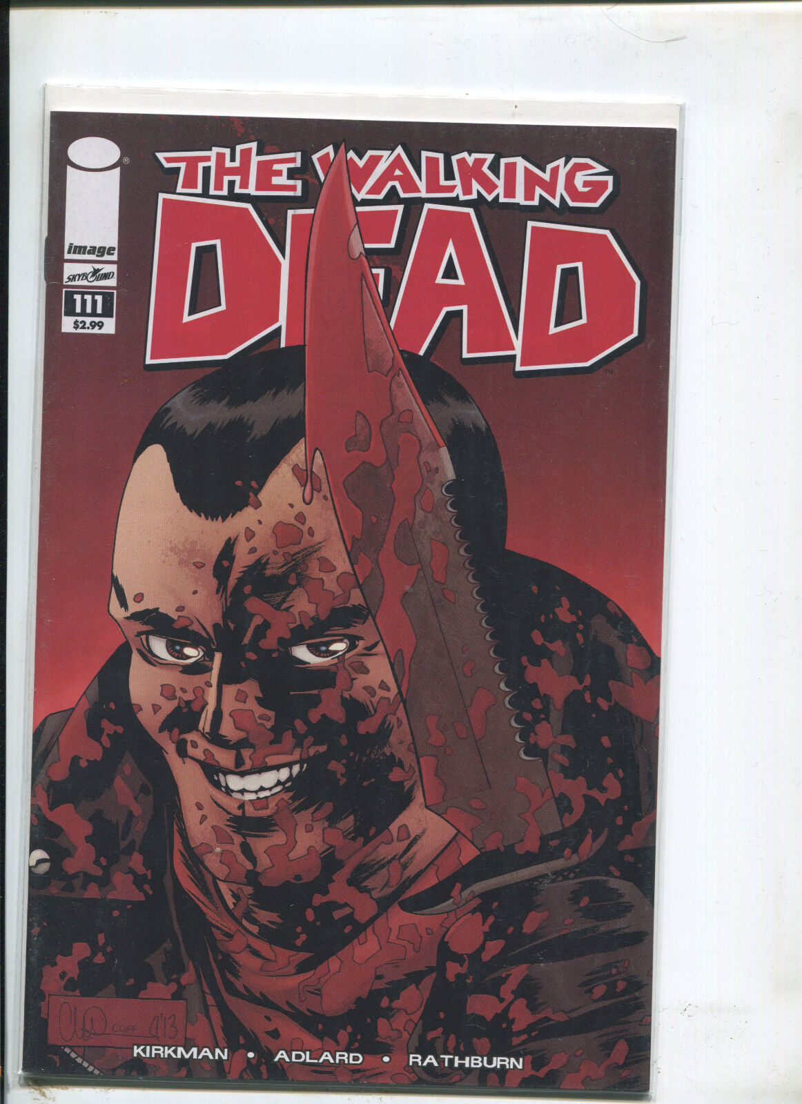 Grade: 9.2 NM-THE WALKING DEAD #111 (9.2) 1ST PRINTFrequently Asked Questions: What is your base shipping for raw comics?Our base ship method will be in a media box, media mail for $5 domestic. If it says expedited $5.60 that’s a typo! Base shipping price you see is for your item to be shipped very well in the appropriate box. We spend money on these boxes to protect during shipping so you can be confident your item will arrive securely. What is your base shipping for CGC comics?Domestic for CGCs are $10 for the first and $5 for each additional one you add.Do you combine shipping? Yes, of like items. Such as: several comics can fit in one media box, as can more than one record. Multiple art pages can easily be combined because they are light and thin. Where combined shipping differs is with size and weight. For instance, two statues require a much bigger box. Same goes for CGCs, as the package gets bigger and heavier as you go.Do you ship well? I’ve had some bad experiences… You needn’t worry; we are professionals who value your business and want your item to arrive safely as much as you do. I have been collecting for over 30 years. I send out items the way I would like to receive them. What does WH mean? We operate out of two locations, so WH stands for Warehouse, an internal code for us to know which location the item is in.Have these CGCs had any previous owners? No. I have personally sent in almost all of these to CGC and had them returned to me, offering them fresh to the market for the 1st time. I see the word STAT when describing the art page I’m interested in. What’s a STAT? A STAT is essentially a photocopy glued on to one or more of the panels by the artist done during production of the piece and is not original artwork. We will do our best to clearly identify what’s a STAT or what isn't on your page, if indeed it contains one.I changed my mind after successfully winning the auction or fixed price listing, will you cancel the transaction? Please only bid or hit BUY IT NOW if you are willing to follow through and pay for the item, we will not cancel the transaction. As a seller, Hip penalizes us every time we cancel an order, so it is detrimental to our business to do so. Therefore if you will not pay, then you'll have to let Hip cycle this to an “unpaid item” and accept whatever action Hip deems necessary. How do you grade? 10.0 GM Gem Mint 9.9 M Mint 9.8 NM/M Near Mint/Mint 9.6 NM+ Near Mint+ 9.4 NM Near Mint 9.2 NM- Near Mint- 9.0 VF/NM Very Fine/Near Mint 8.5 VF+ Very Fine+ 8.0 VF Very Fine 7.5 VF- Very Fine- 7.0 FN/VF Fine/Very Fine 6.5 FN+ Fine+ 6.0 FN Fine 5.5 FN- Fine- 5.0 VG/FN Very Good/Fine 4.5 VG+ Very Good+ 4.0 VG Very Good 3.5 VG- Very Good- 3.0 GD/VG Good/Very Good 2.5 GD+ Good+ 2.0 GD Good 1.8 GD- Good- 1.5 FR/GD Fair/Good 1.0 FR Fair 0.5 PR Poor Grading is VERY subjective, i try to grade items as best i can but use the pics as a guide for yourself and if you still have any questions send an email. Happy Bidding!We use the comic book grading system (link below) for almost all of our auctions, please refer to this chart and look at the pictures to decide for yourself if the grading is to your liking and agreement (if you notice any glaring omissions please contact us, our goal is 100% customer satisfaction). will be graded accordingly to the best of our abilities so unless the item is SEALED please refer to the guide & pictures and decide for yourself. Placing a bid on this item verifies that you agree with the grading we have provided. Happy Bidding!See ABOUT ME for 1000's of original art pages in stockI combine shipping on multiple buys! I combine shipping on multiple buys! See FAQAS SEEN ON TV: I am the Regular Comic Book Expert on Kevin Smith's Comic Book MenSundays at 11:30 pm on AMC (Following the Walking Dead) I have been buying and selling artwork and comics for about 20 years. The artwork pictured are all one of kind originals unless otherwise described. If you are new to buying art feel free to ask any questions that you may have.Anthony is always interested in doing business and answering your questions feel free to call (917) 821-8893 or e-mail me to let me know what you have. This # is text enabled as well.See ABOUT ME for 1000's of original art pages in stock Small, Regular, and Large Portfolios available; see my Hip store! Froo | Froo Cross Sell, Free Cross Sell, Cross promote, Hip Marketing, Hip listing Apps, Hip Apps, Hip Application