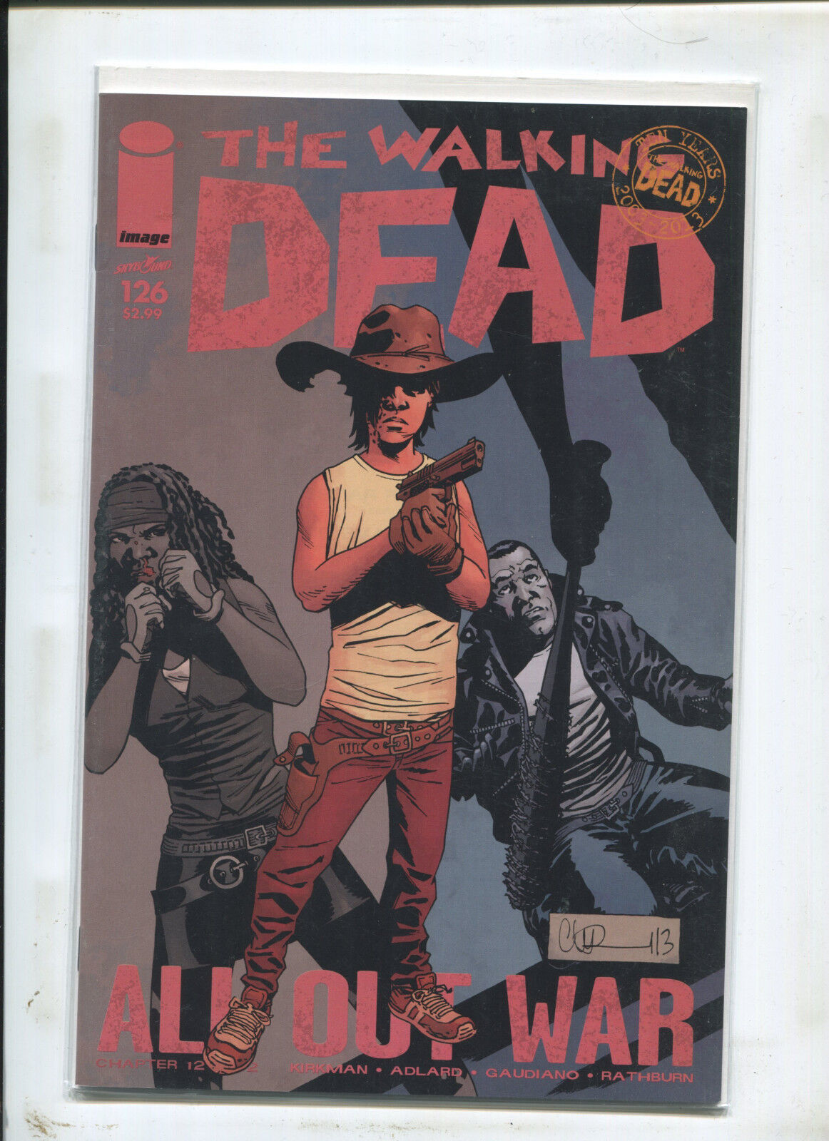 Grade: 9.2 NM-THE WALKING DEAD #126 (9.2) 1ST PRINTFrequently Asked Questions: What is your base shipping for raw comics?Our base ship method will be in a media box, media mail for $5 domestic. If it says expedited $5.60 that’s a typo! Base shipping price you see is for your item to be shipped very well in the appropriate box. We spend money on these boxes to protect during shipping so you can be confident your item will arrive securely. What is your base shipping for CGC comics?Domestic for CGCs are $10 for the first and $5 for each additional one you add.Do you combine shipping? Yes, of like items. Such as: several comics can fit in one media box, as can more than one record. Multiple art pages can easily be combined because they are light and thin. Where combined shipping differs is with size and weight. For instance, two statues require a much bigger box. Same goes for CGCs, as the package gets bigger and heavier as you go.Do you ship well? I’ve had some bad experiences… You needn’t worry; we are professionals who value your business and want your item to arrive safely as much as you do. I have been collecting for over 30 years. I send out items the way I would like to receive them. What does WH mean? We operate out of two locations, so WH stands for Warehouse, an internal code for us to know which location the item is in.Have these CGCs had any previous owners? No. I have personally sent in almost all of these to CGC and had them returned to me, offering them fresh to the market for the 1st time. I see the word STAT when describing the art page I’m interested in. What’s a STAT? A STAT is essentially a photocopy glued on to one or more of the panels by the artist done during production of the piece and is not original artwork. We will do our best to clearly identify what’s a STAT or what isn't on your page, if indeed it contains one.I changed my mind after successfully winning the auction or fixed price listing, will you cancel the transaction? Please only bid or hit BUY IT NOW if you are willing to follow through and pay for the item, we will not cancel the transaction. As a seller, Hip penalizes us every time we cancel an order, so it is detrimental to our business to do so. Therefore if you will not pay, then you'll have to let Hip cycle this to an “unpaid item” and accept whatever action Hip deems necessary. How do you grade? 10.0 GM Gem Mint 9.9 M Mint 9.8 NM/M Near Mint/Mint 9.6 NM+ Near Mint+ 9.4 NM Near Mint 9.2 NM- Near Mint- 9.0 VF/NM Very Fine/Near Mint 8.5 VF+ Very Fine+ 8.0 VF Very Fine 7.5 VF- Very Fine- 7.0 FN/VF Fine/Very Fine 6.5 FN+ Fine+ 6.0 FN Fine 5.5 FN- Fine- 5.0 VG/FN Very Good/Fine 4.5 VG+ Very Good+ 4.0 VG Very Good 3.5 VG- Very Good- 3.0 GD/VG Good/Very Good 2.5 GD+ Good+ 2.0 GD Good 1.8 GD- Good- 1.5 FR/GD Fair/Good 1.0 FR Fair 0.5 PR Poor Grading is VERY subjective, i try to grade items as best i can but use the pics as a guide for yourself and if you still have any questions send an email. Happy Bidding!We use the comic book grading system (link below) for almost all of our auctions, please refer to this chart and look at the pictures to decide for yourself if the grading is to your liking and agreement (if you notice any glaring omissions please contact us, our goal is 100% customer satisfaction). will be graded accordingly to the best of our abilities so unless the item is SEALED please refer to the guide & pictures and decide for yourself. Placing a bid on this item verifies that you agree with the grading we have provided. Happy Bidding!See ABOUT ME for 1000's of original art pages in stockI combine shipping on multiple buys! I combine shipping on multiple buys! See FAQAS SEEN ON TV: I am the Regular Comic Book Expert on Kevin Smith's Comic Book MenSundays at 11:30 pm on AMC (Following the Walking Dead) I have been buying and selling artwork and comics for about 20 years. The artwork pictured are all one of kind originals unless otherwise described. If you are new to buying art feel free to ask any questions that you may have.Anthony is always interested in doing business and answering your questions feel free to call (917) 821-8893 or e-mail me to let me know what you have. This # is text enabled as well.See ABOUT ME for 1000's of original art pages in stock Small, Regular, and Large Portfolios available; see my Hip store! Froo | Froo Cross Sell, Free Cross Sell, Cross promote, Hip Marketing, Hip listing Apps, Hip Apps, Hip Application International Buyers – Please Note: Import duties, taxes, and charges are not included in the item price or shipping cost. These charges are the buyer's responsibility. Please check with your country's customs office to determine what these additional costs will be prior to bidding or buying.