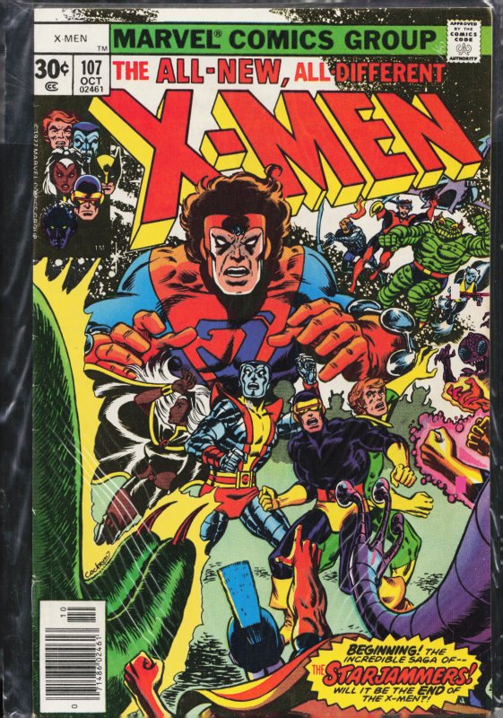 The X-Men #107 (1977) First Appearance: Starjammers (team), Corsair, Ch'od, Hepzibah, Astra, Raza, The Shi'ar Imperial Guard, Gladiator, M'Krann Crystal, D'Ken NeramaniSeller Information