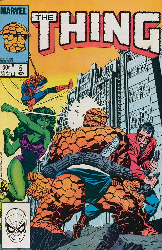 Item: Thing, The #5 | Publisher: Marvel | Cover Date: November 1983 | Writer: John Byrne | Artist: Ron Wilson, John Byrne | Cover Artist: Ron Wilson | Appearances: She-Hulk, Spider-Man, Wonder Man, Puppet Master, Th ... Read More