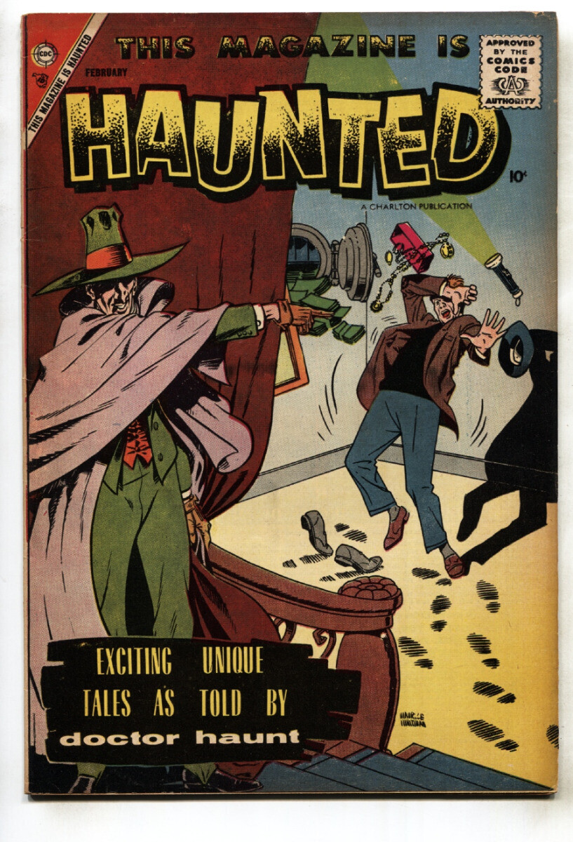 This Magazine is Haunted #15 1958- Ditko- Charlton comic book Steve Ditko stories. Glossy cover, looks VF but has 2" split at top spine. Grade: FN- SKU: DHV-07-474Seller Information