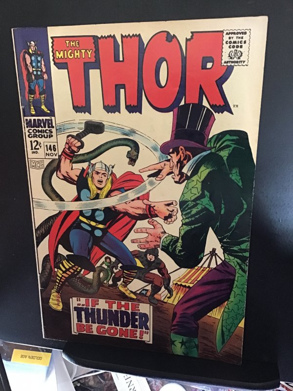 Thor #146 (1967) This book has deep rich color and nice eye-appeal on this all time classic Jack Kirby Thor cover. With With cream/very slight heavy cream interiors. We have adjusted the grade accordingly. Wit light wear appropriate to grade. There is like creasing at the lower outer end of the back cover.Seller Information