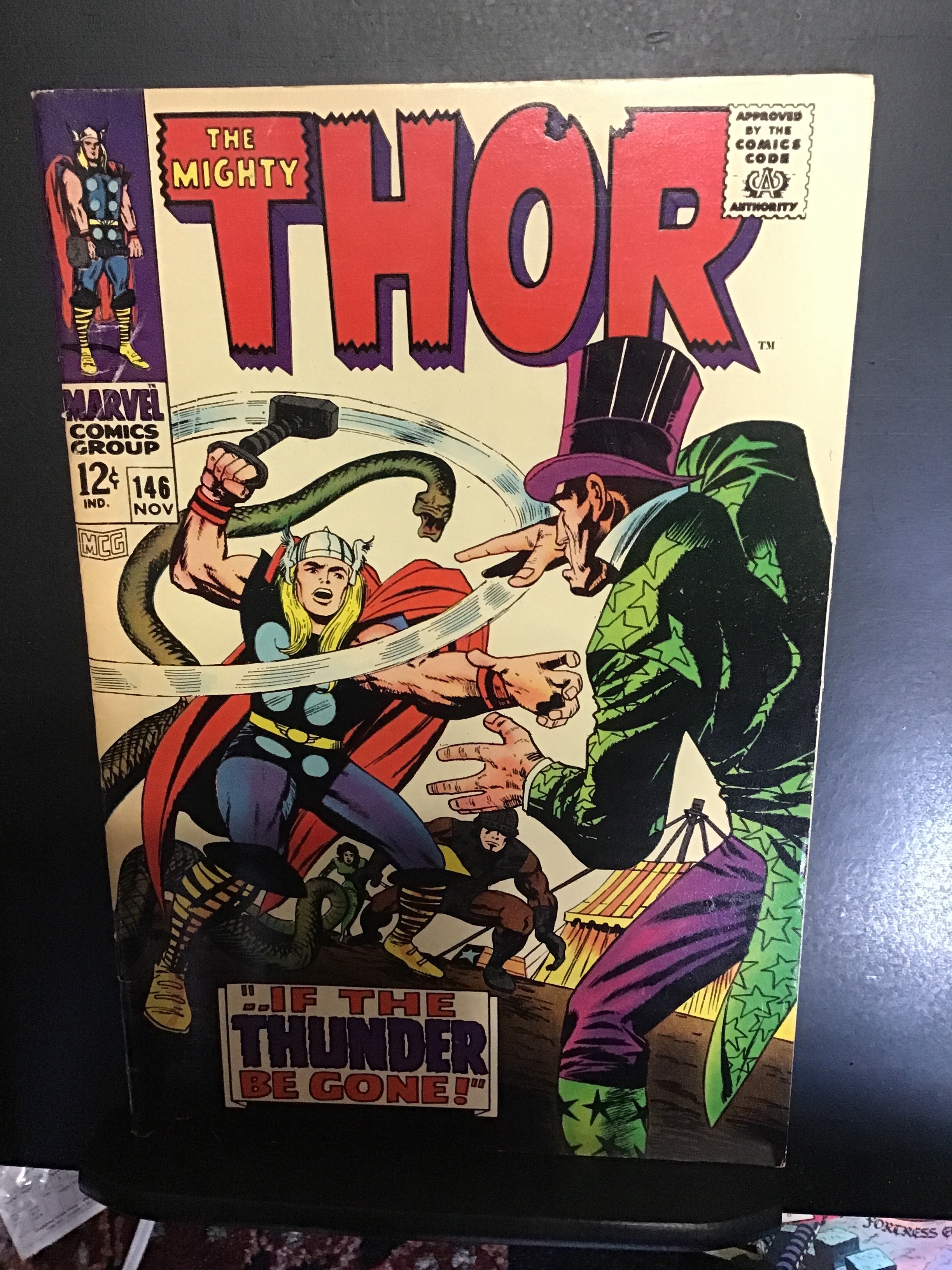 Thor #146 (1967) This book has deep rich color and very nice eye-appeal on this all time classic Kirby cover! With cream/slight heavy cream tint interiors and a shadow down the spine-side of the back cover. With ove ... Read More