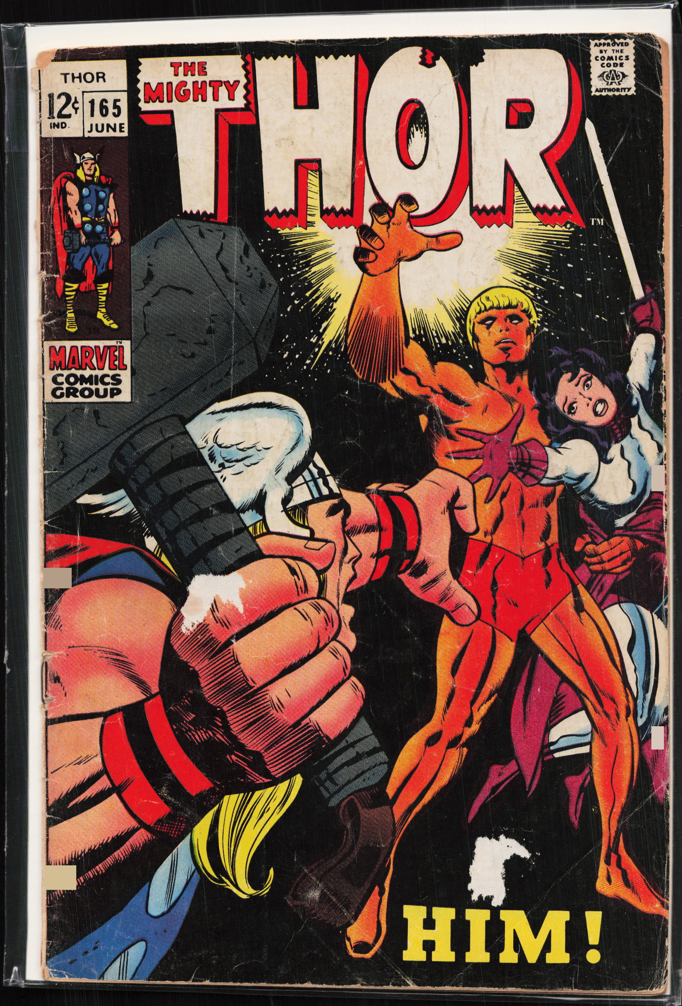 Thor #165 (1969) First Appearance: Warlock (as Him)tape pulls fc, 3 in tear back cover through last half of book