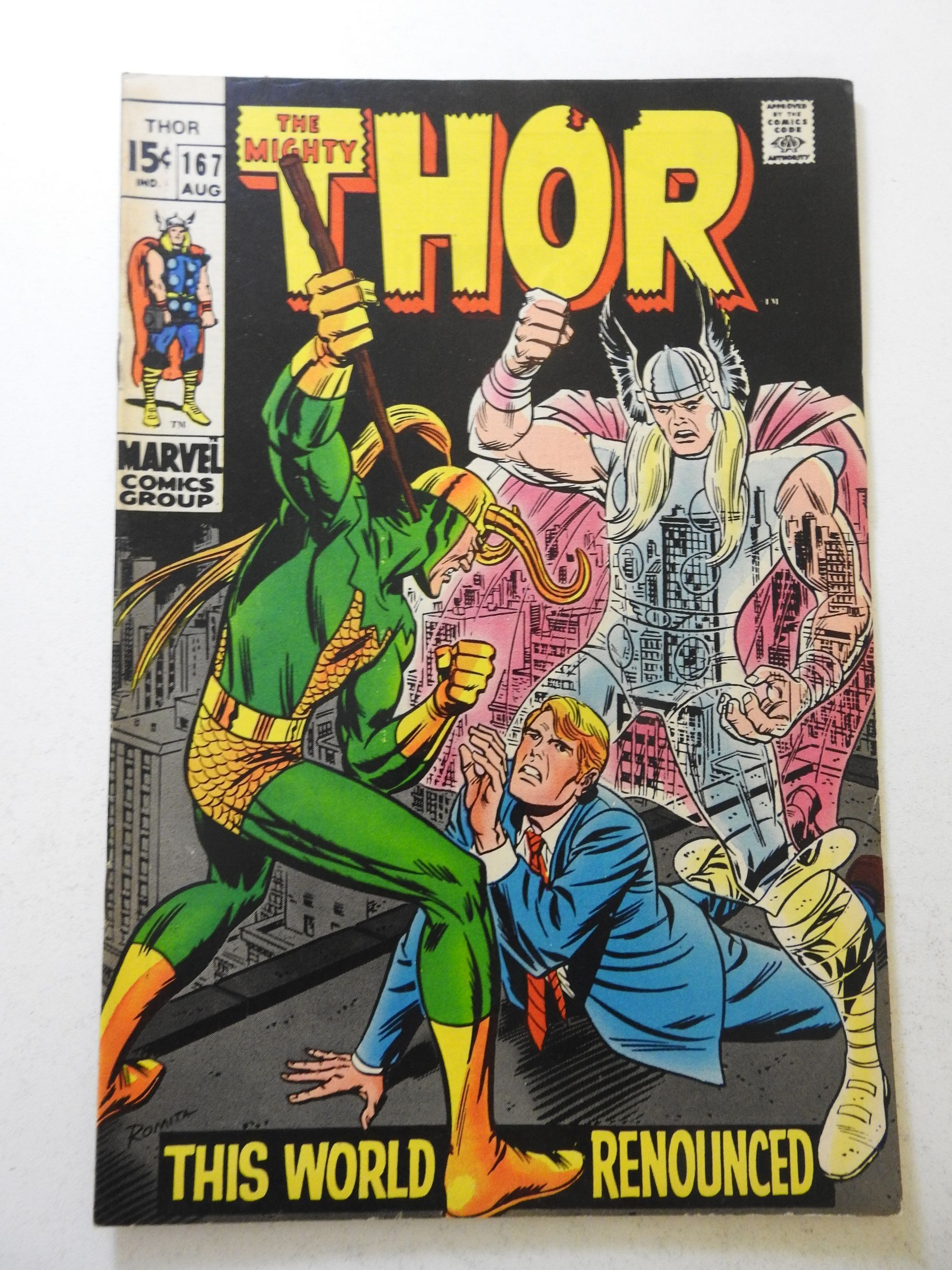 Thor #167 (1969) VG+ Condition centerfold detached bottom staple