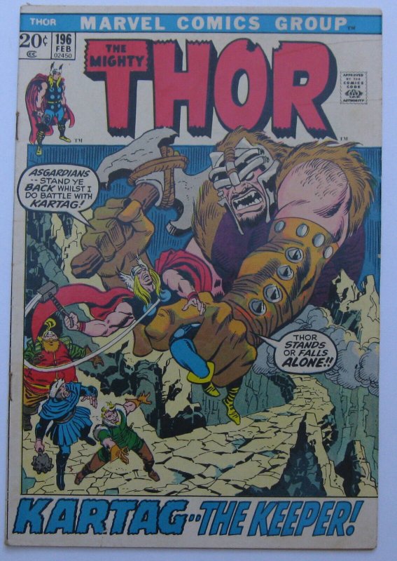 Thor #196 (Feb 1972, Marvel), VG-FN condition (5.0), Thor vs. Mangog